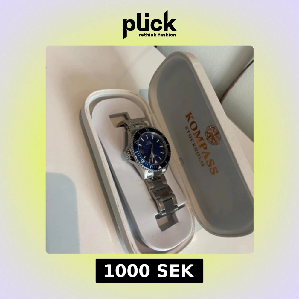 Stilren klocka från Kompass Stockholm med blå urtavla och datumvisning. Klockan har en robust länk i silverfärgat metall och tydliga indexmarkeringar. Perfekt accessoar för dig som gillar klassisk design med modern touch.