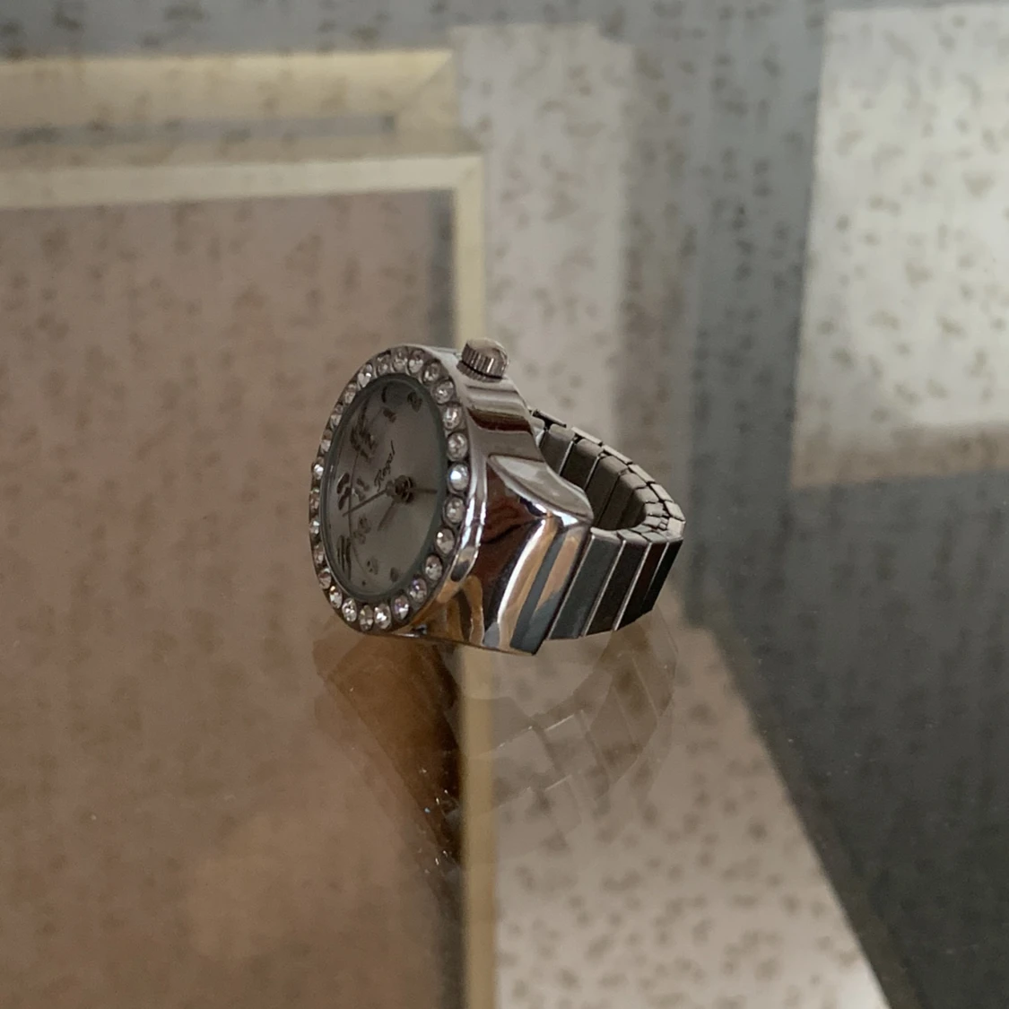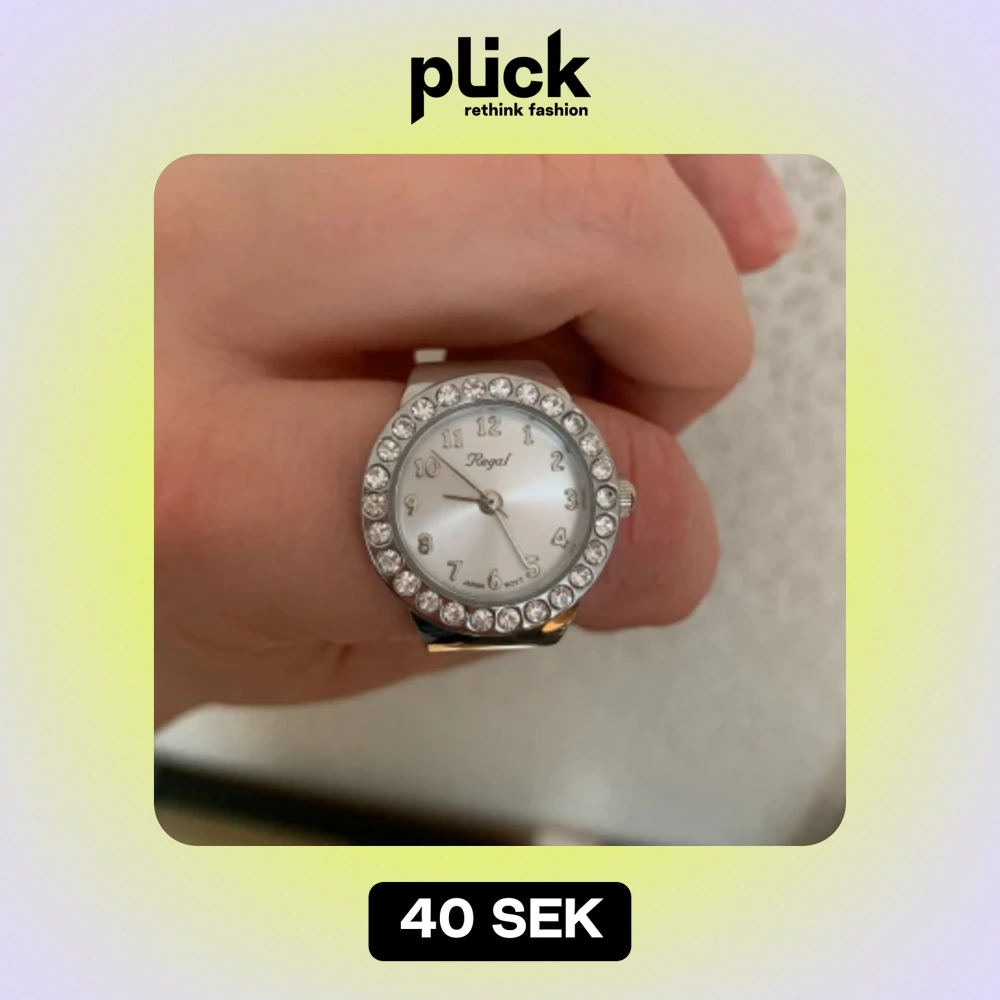 En ring med en klocka på i fräscht skick! Batteriet är tyvärr urladdat men det går att byta ☺️Bandet är uttöjbart och är vanligtvis en aningen större storlek.