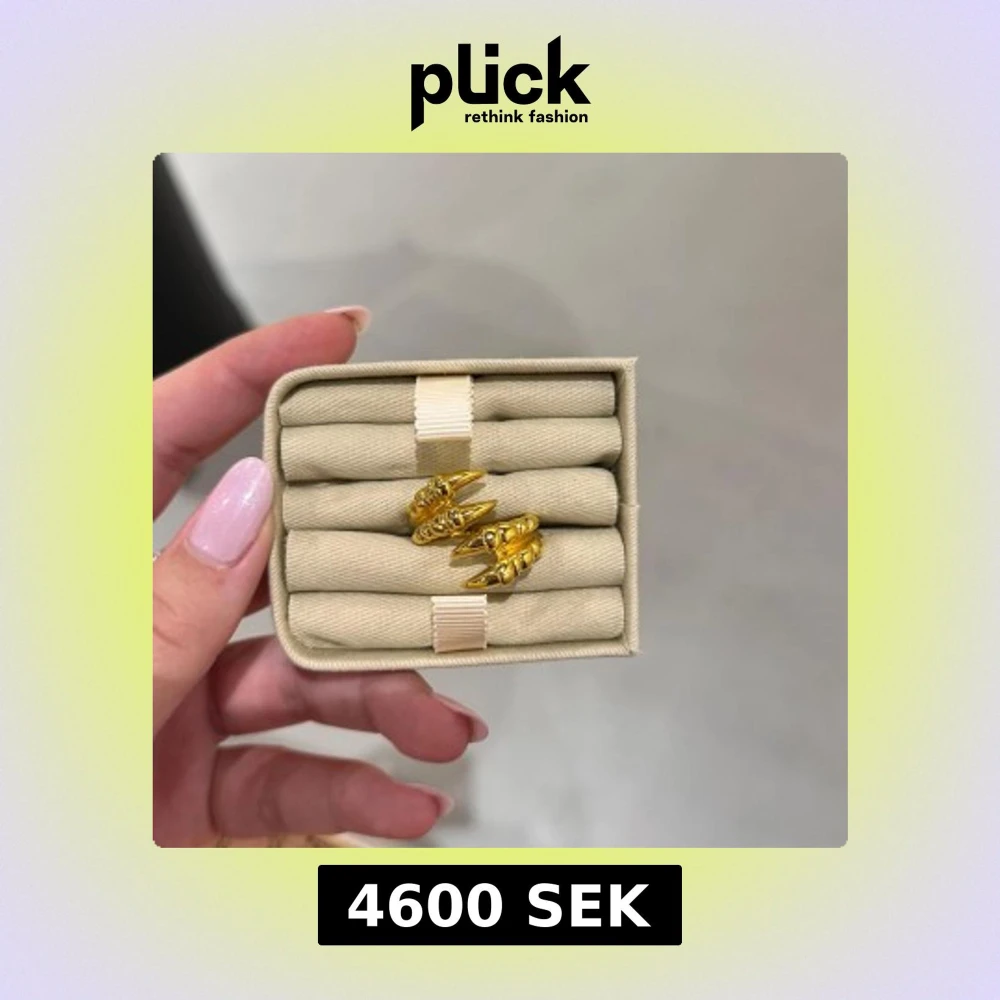 Ring i guldton med unikt kloformad design. Inköpt på NK i februari, knappt använd sen dess och ser som ny ut. Har med påse och orginalbox. Strl 17. Nypris är 5400