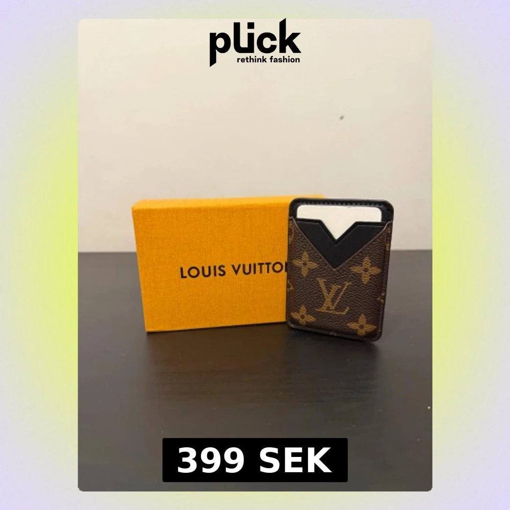 Snygg korthållare i brunt och svart skinn med klassiskt monogrammönster.Slimmad design med plats för flera kort, perfekt att fästa (magnet) på mobilen . Lyxig och stilren accessoar för dig som gillar designer.