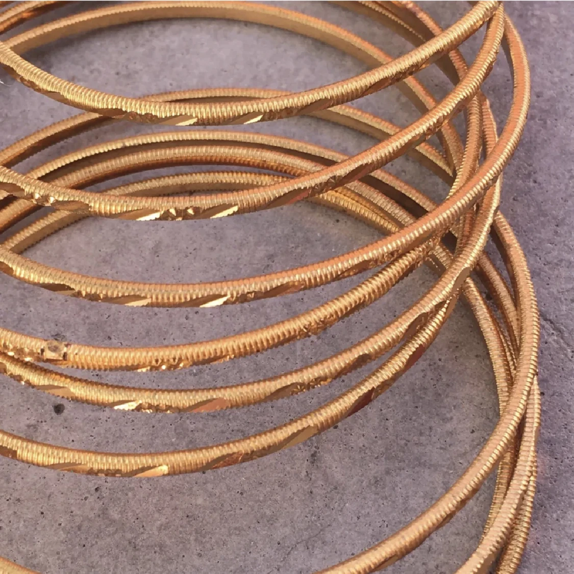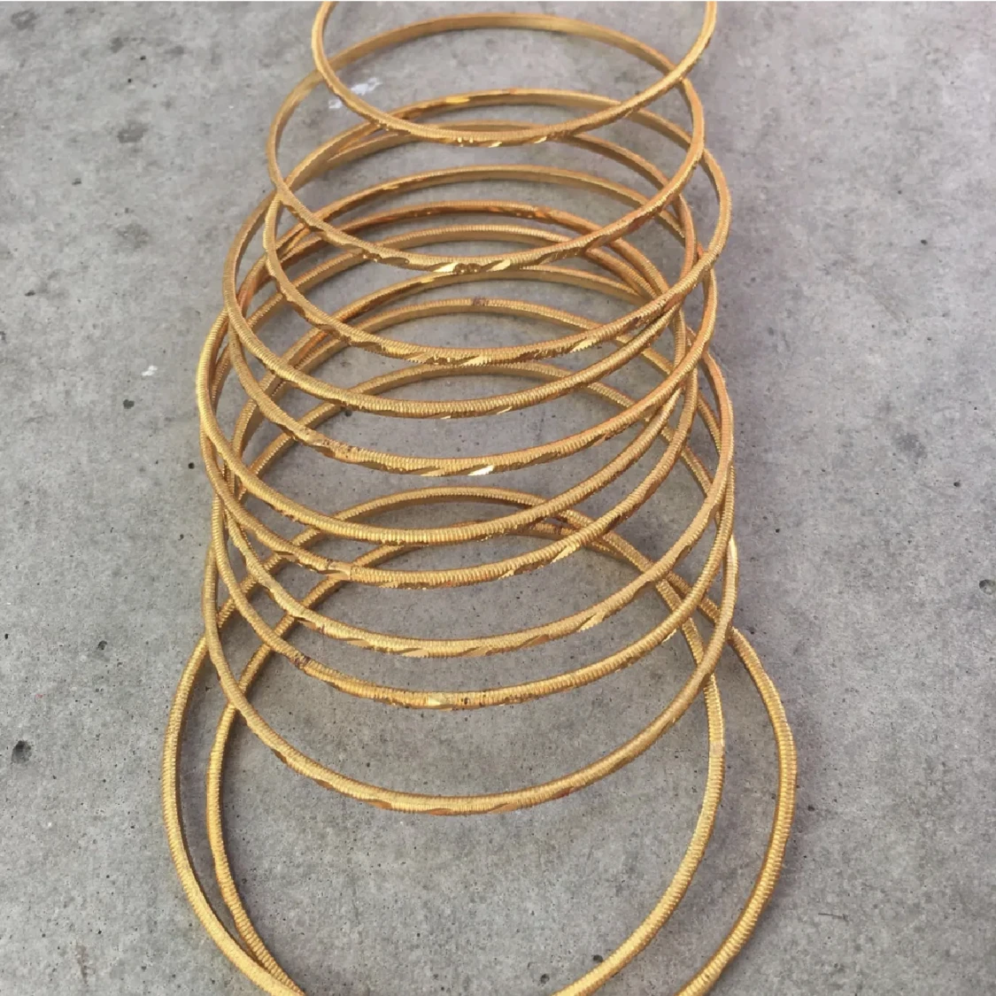 7 st guldarmband, helt nya och oanvända. De är 6cm i diameter. Inte äkta guld såklart men ser ut som det. Frakt tillkommer. Skriv gärna vid frågor 💛💛