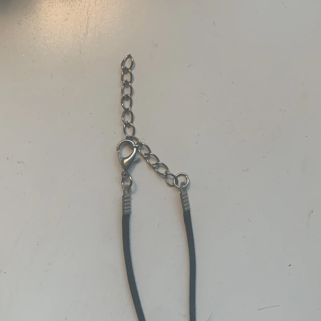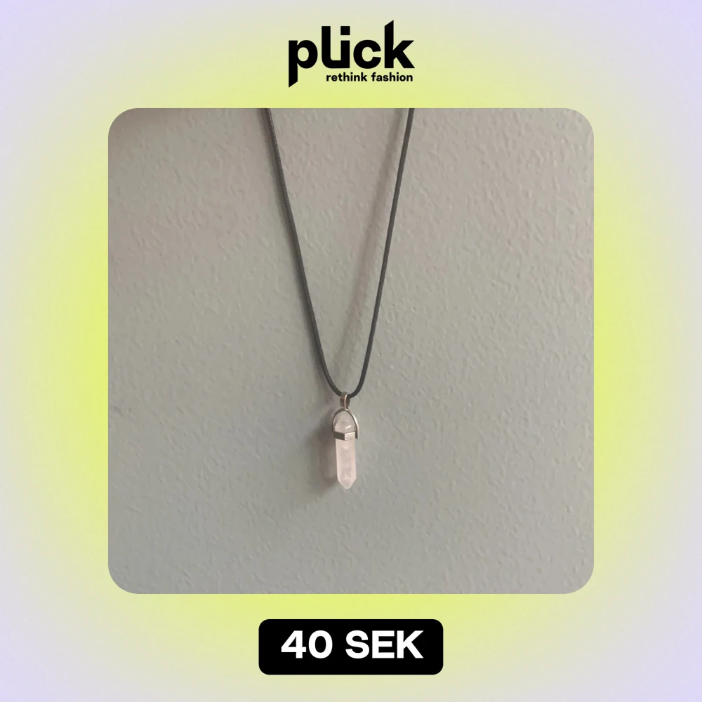 Snyggt halsband med ett vitt kristallhänge. Hänget är spetsigt och infattat i en silverfärgad hållare. Har bara använt en gång så är i nyskick🩷Köpte för ca 75kr. Ca 40 cm långt. Köparen står för frakt💖
