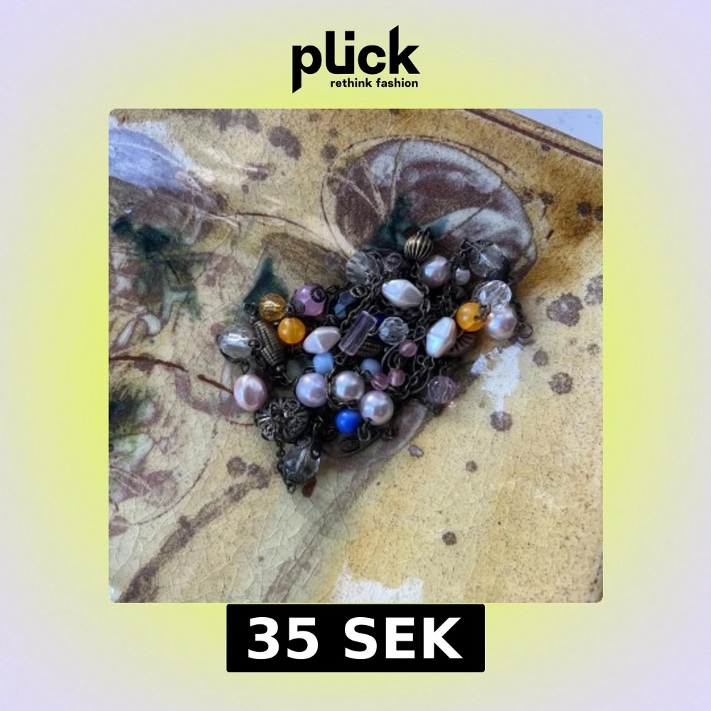 Unikt halsband med en mix av färgglada pärlor och stenar i olika former och storlekar. Halsbandet har inslag av blått, rosa, gult och vitt, vilket ger det en bohemisk känsla. Perfekt för att liva upp vilken outfit som helst.