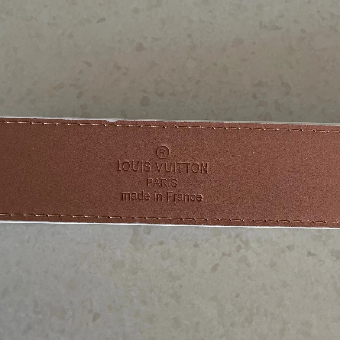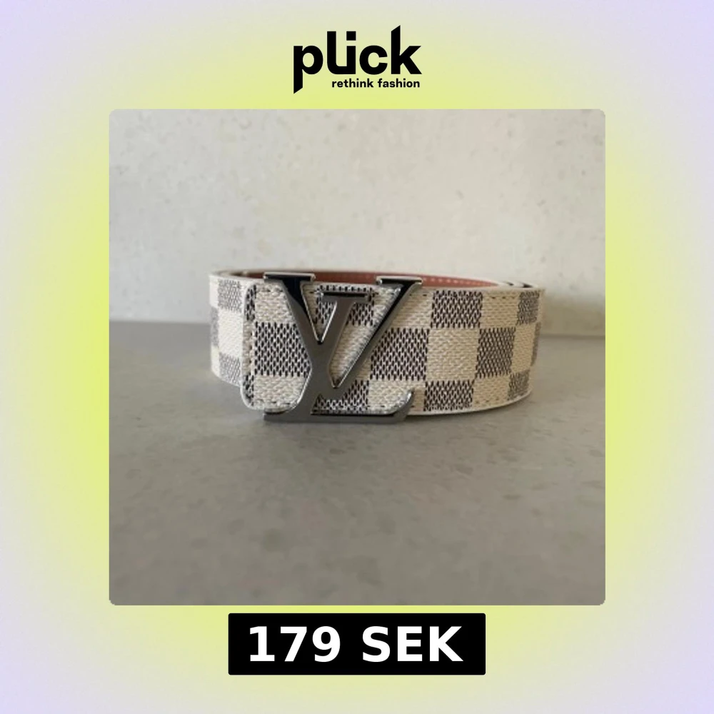 L och V bälte med ikoniskt rutigt mönster i beige och grått. Bältet har en stor L och V logga i silverfärgad metall som spänne. Perfekt accessoar för dig som vill sticka ut med en lyxig detalj.