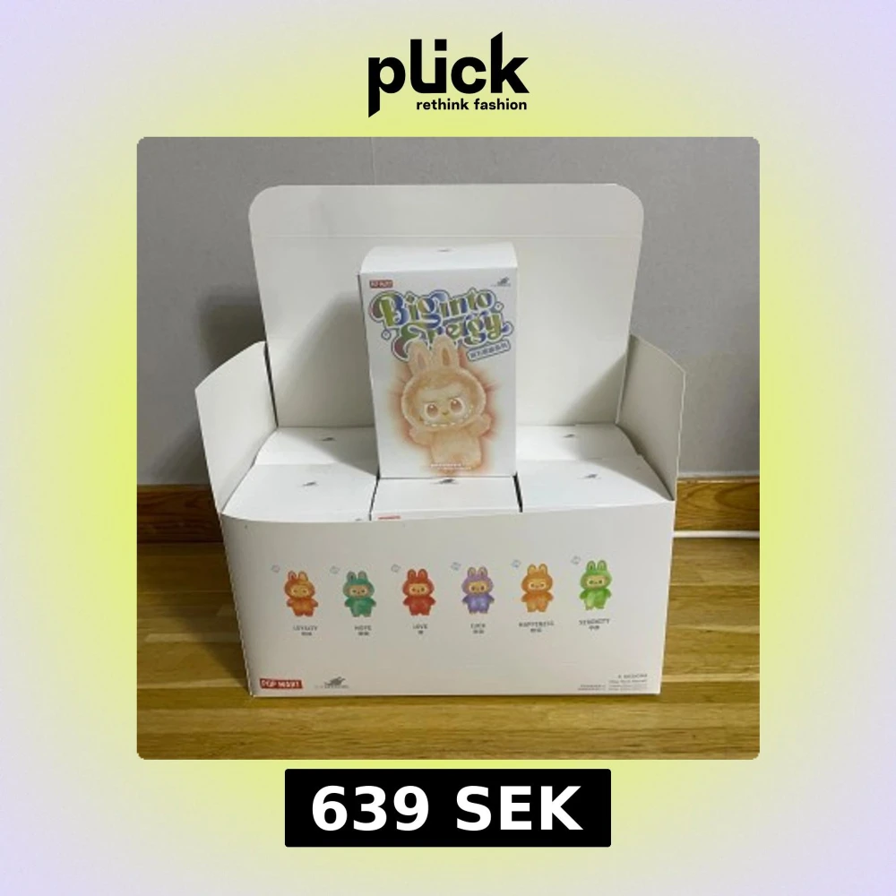 Oöppnad Biginto Energy blind box från Pop Mart. Innehåller en av flera söta vinyl plush figurer, inklusive Love, Hope, Serenity, Luck, Happiness eller Loyalty. Perfekt skick, originalförpackning. Samlarobjekt med chans till hemlig figur. Perfekt present eller till samlingen!