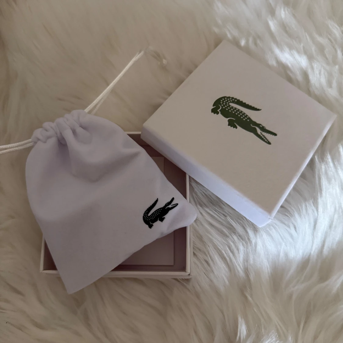 Snyggt armband från Lacoste i silverfärg med fyrkantiga länkar och diskret mönster på vissa länkar. Kommer i original ask och tygpåse med klassiska gröna krokodilloggan. Perfekt accessoar för dig som gillar stilrena detaljer.
