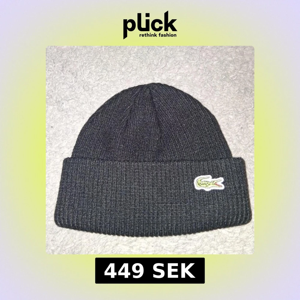 Säljer en svart ribbad mössa från Lacoste med klassisk krokodillogga framtill. Mössan är tillverkad i 94% bomull och 6% spandex vilket gör den både mjuk och stretchig. Perfekt för kyliga dagar och enkel att matcha med olika outfits. Barn storlek.