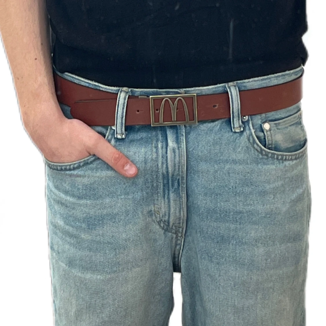 Intressekoll på brunt McDonald’s bälte av äkta läder. 110 cm långt. Ni får gärna buda på den!