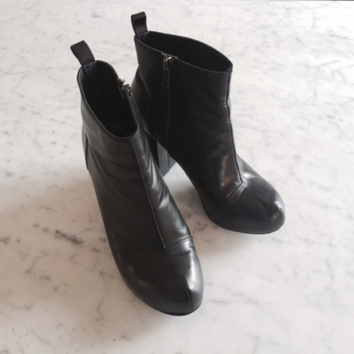 Stövlar i svart äkta läder. Använda men inga skador. Köpta för 1000 kronor två år sen. Märke XIT. Litet platform under tårna.