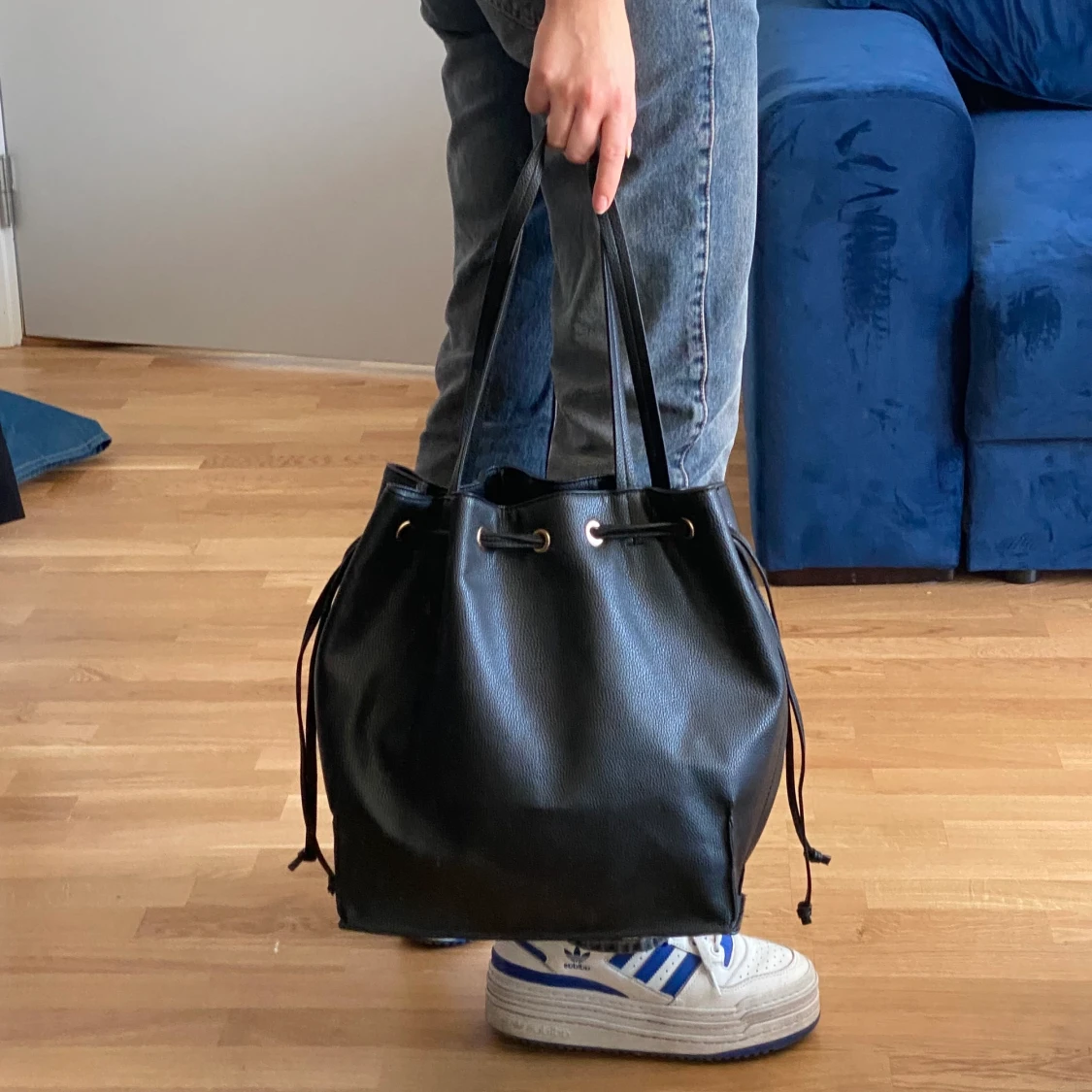 Väska i läder och Bucket Bag-modell. Aldrig använd och i mycket gott skick.