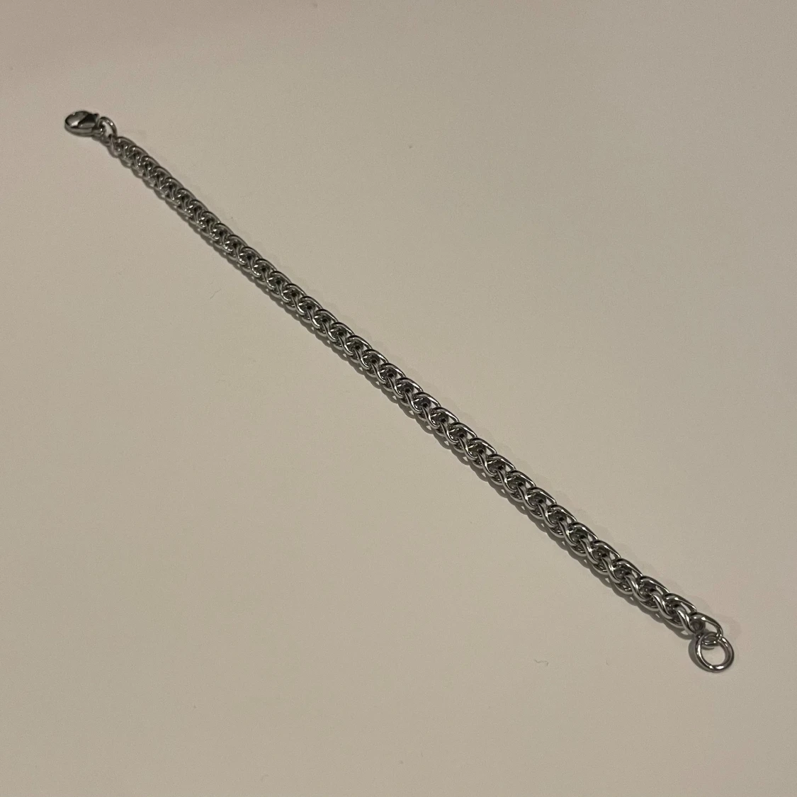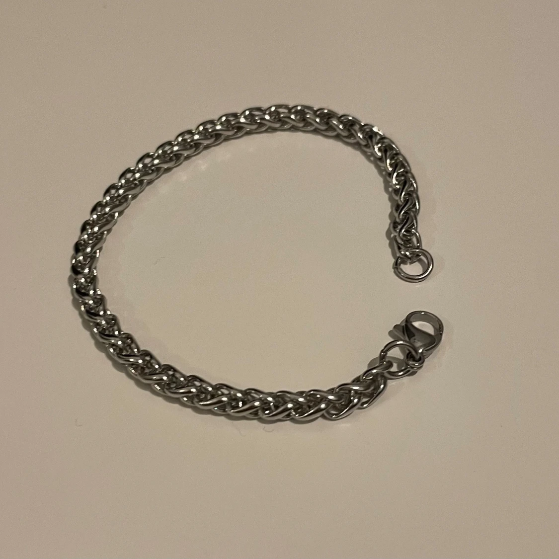 Snyggt silverfärgat armband med en klassisk kedjedesign. Perfekt för att ge en stilren touch till din outfit. Armbandet har en praktisk låsmekanism som gör det enkelt att ta på och av.