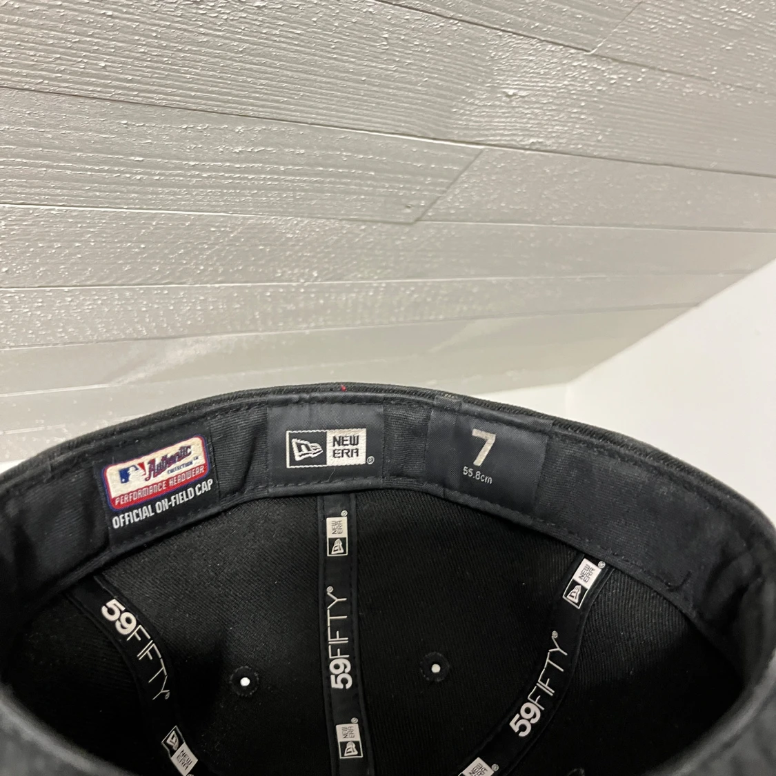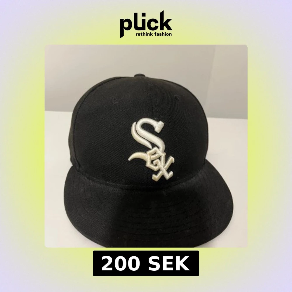Snygg svart keps från New Era 59FIFTY med White Sox-logga broderad i vitt framtill. Klassisk basebollmodell med böjd skärm och MLB-logga baktill. Perfekt för dig som gillar sportig streetstyle och vill ha en ikonisk look. Flitigt använd nypris 500, tveka inte att fråga om det är något ni undrar. MVH