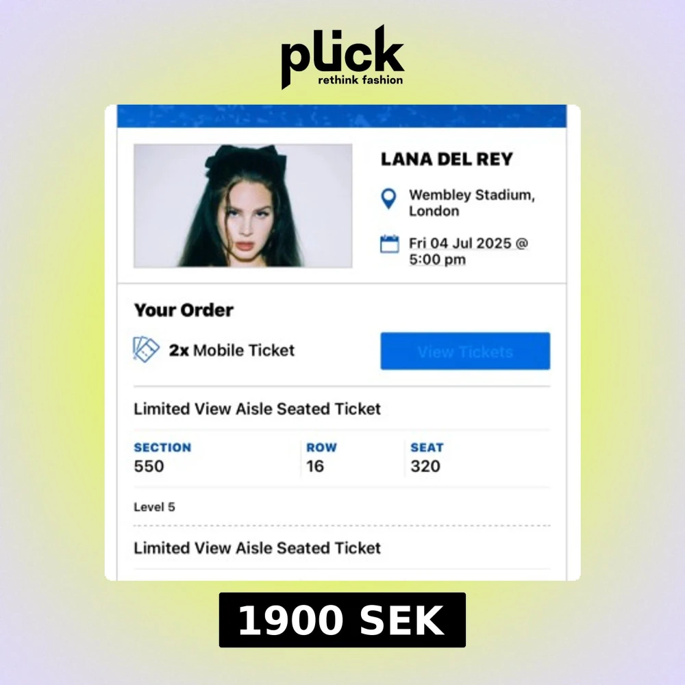 Säljer två biljetter till Lana Del Reys konsert på Wembley arena i London. Kunde inte gå pga jobb.
