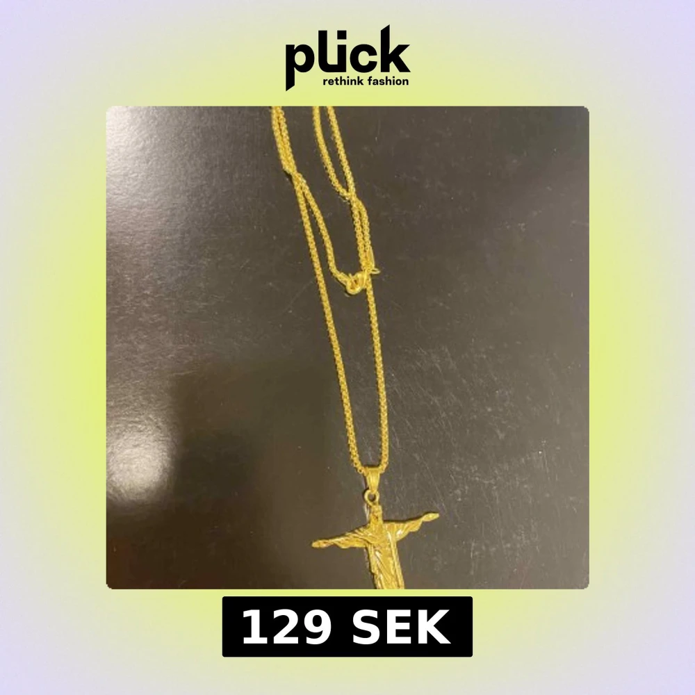 Snyggt halsband i guldton med en detaljrik Jesus-berlock som hänger på en klassisk kedja. Perfekt för dig som gillar statement-smycken med religiös touch. Kedjan har en enkel låsning och berlocken är i blank guldfärg.
