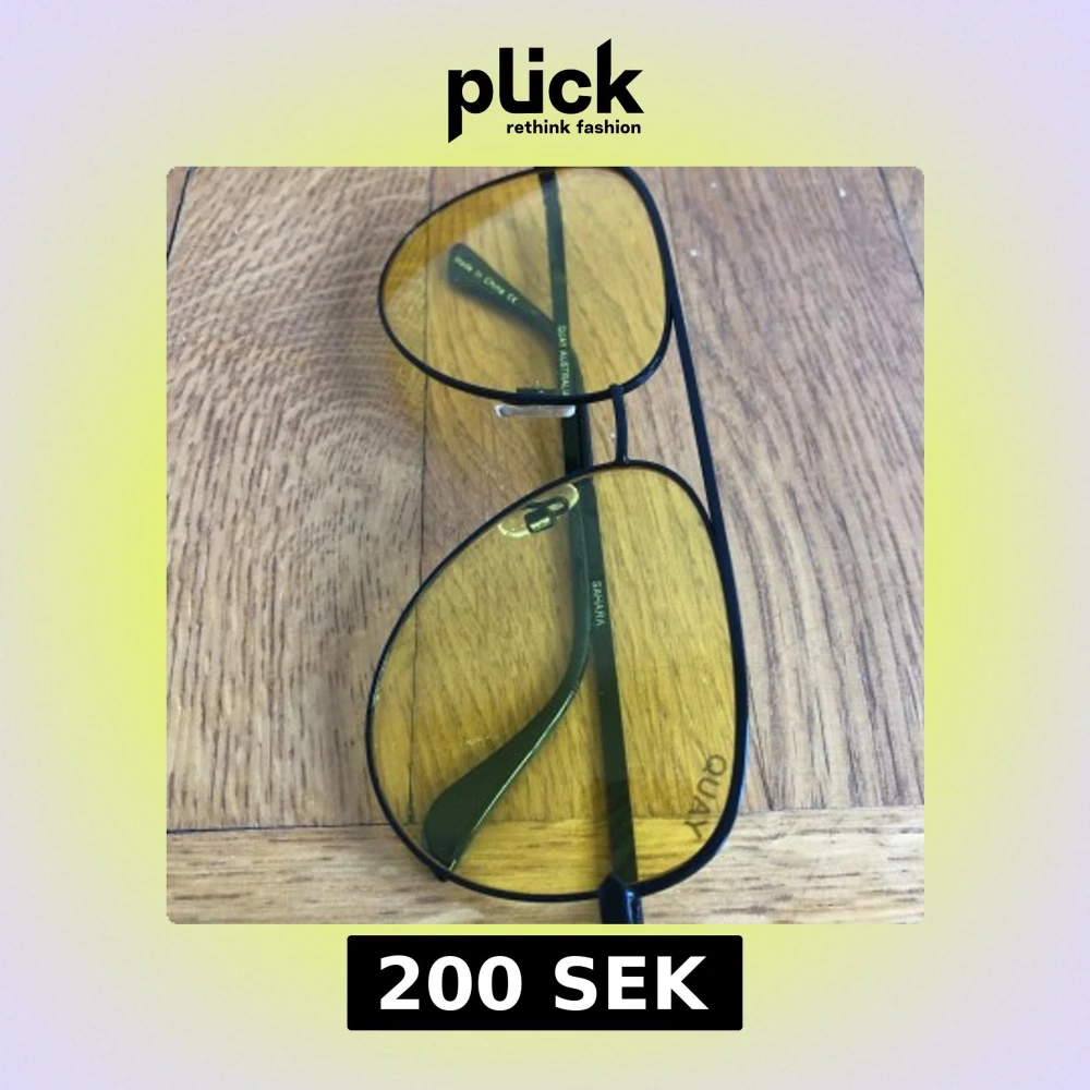 Snygga pilotbågar i svart metall med gula tonade glas från Quay. Perfekta för att sticka ut och ge en cool look. Lätta och bekväma att bära, passar både till vardag och när du vill ha något extra. Lite spricka i glaset finns.