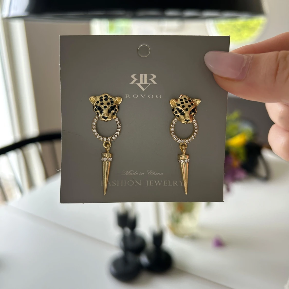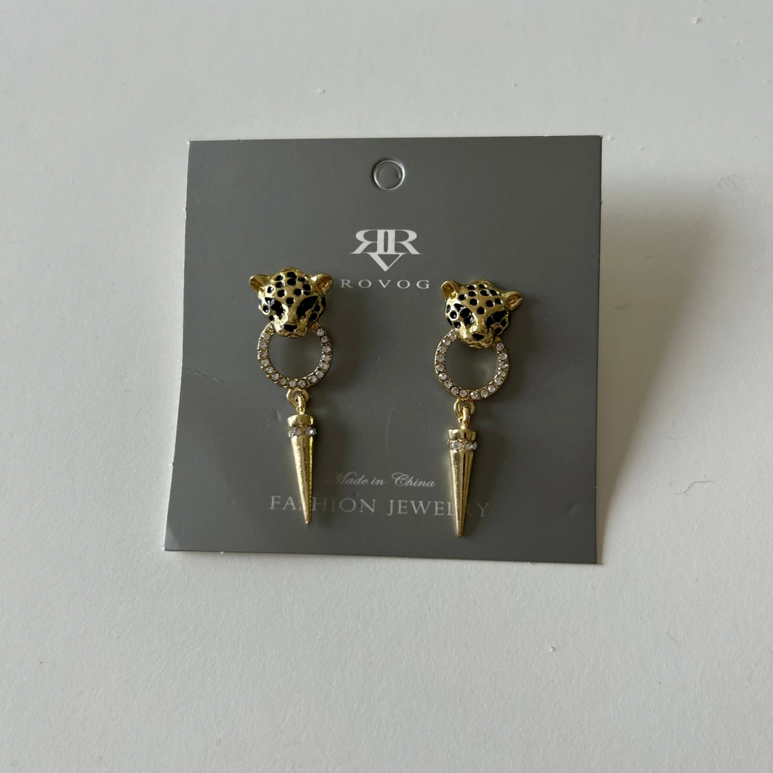 Super fina guldörhängen i rostfritt stål, de blir inte gröna och färgas av sig på huden. Helt nya och oanvända. Det är ett leopardhuvud