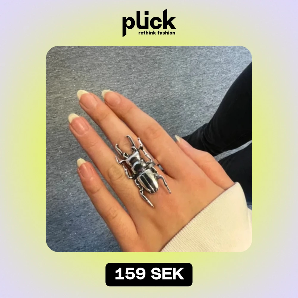 Jättefin o cool skalbagge ring, justerbar. Säljer då den ej kmr till användning💗Har använd max 3 ggr alltså i nyskick💓