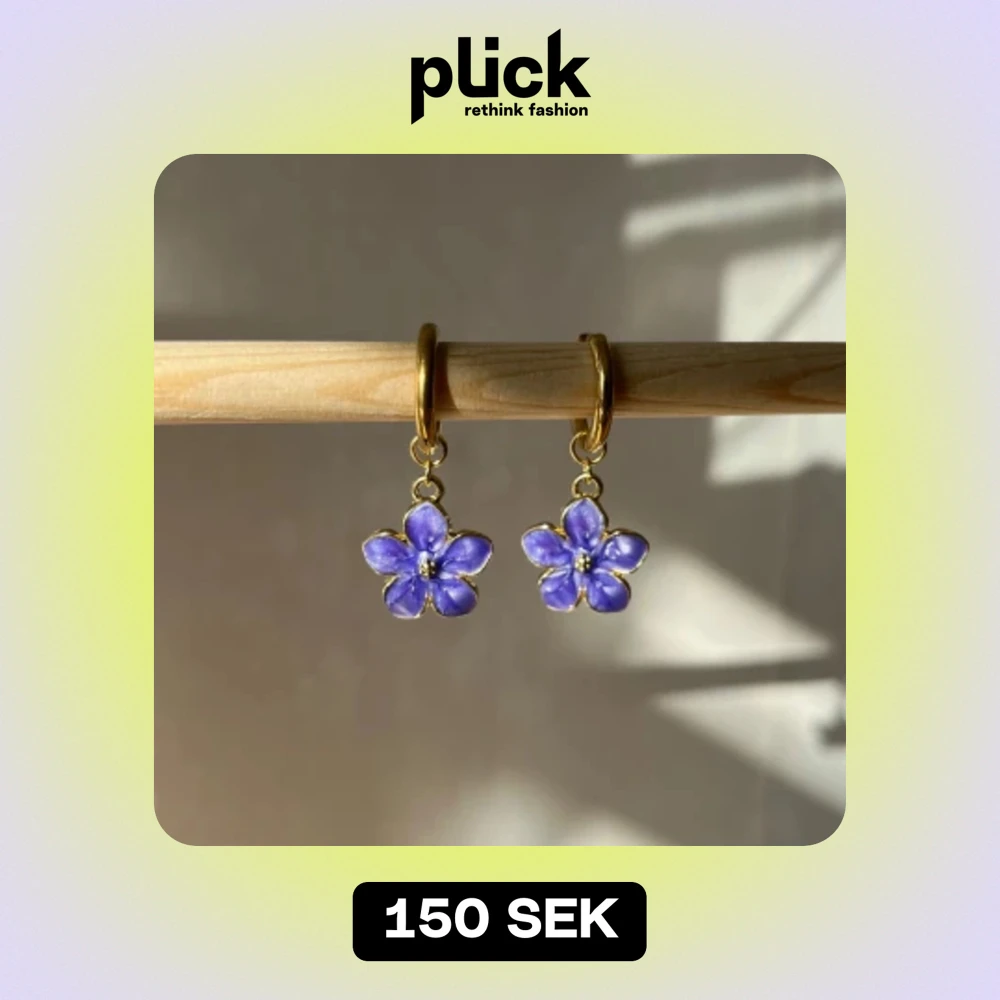 Superfina örhängen med lila blommor som hänger från en guldfärgad ring. Perfekta för att ge en färgklick till vilken outfit som helst. Blommorna har en söt och detaljrik design som verkligen fångar ögat. Passar både till vardags och fest! Handgjorda.