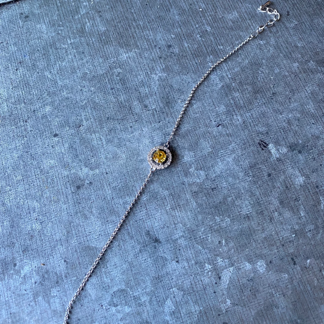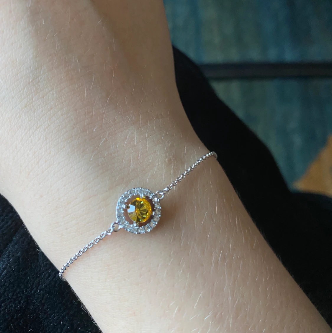 Detta armband fick jag för ca 4 årsedan och knappt använt, så det är så gott som nytt! Silvrigt armband med en gul Sten i. Nypris 299 kr