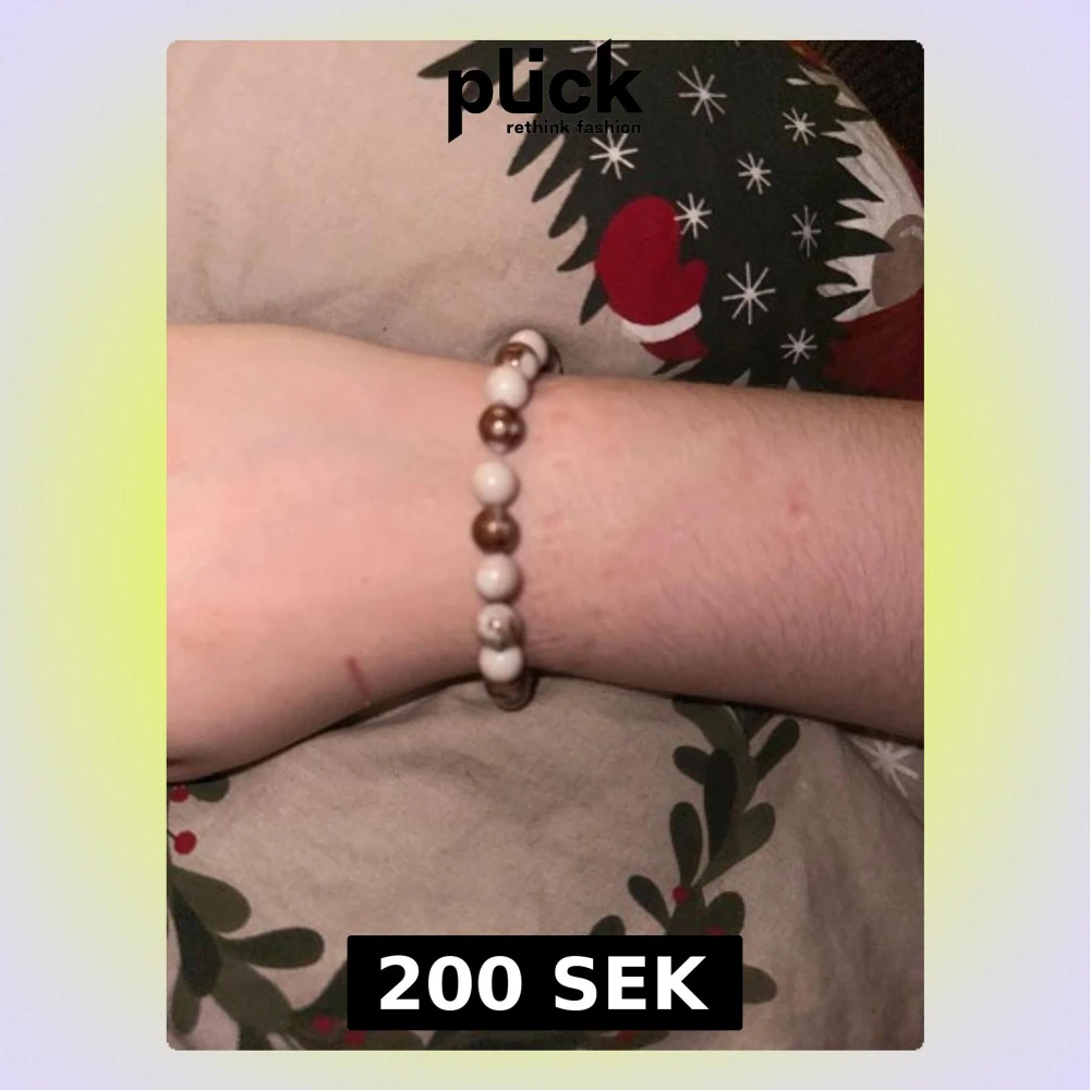 Snyggt armband med pärlor i brunt och vitt, trädd på elastisk tråd. Pärlorna är runda och har en glansig finish som ger en stilren och enkel look. Perfekt för dig som gillar minimalistiska accessoarer med en touch av retro.