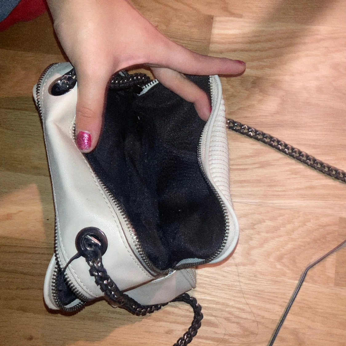 Den är ganska liten men får plats med mycket, de finns fack på båda sidorna av väska och är i väldigt bra skick ♥️ köp gärna