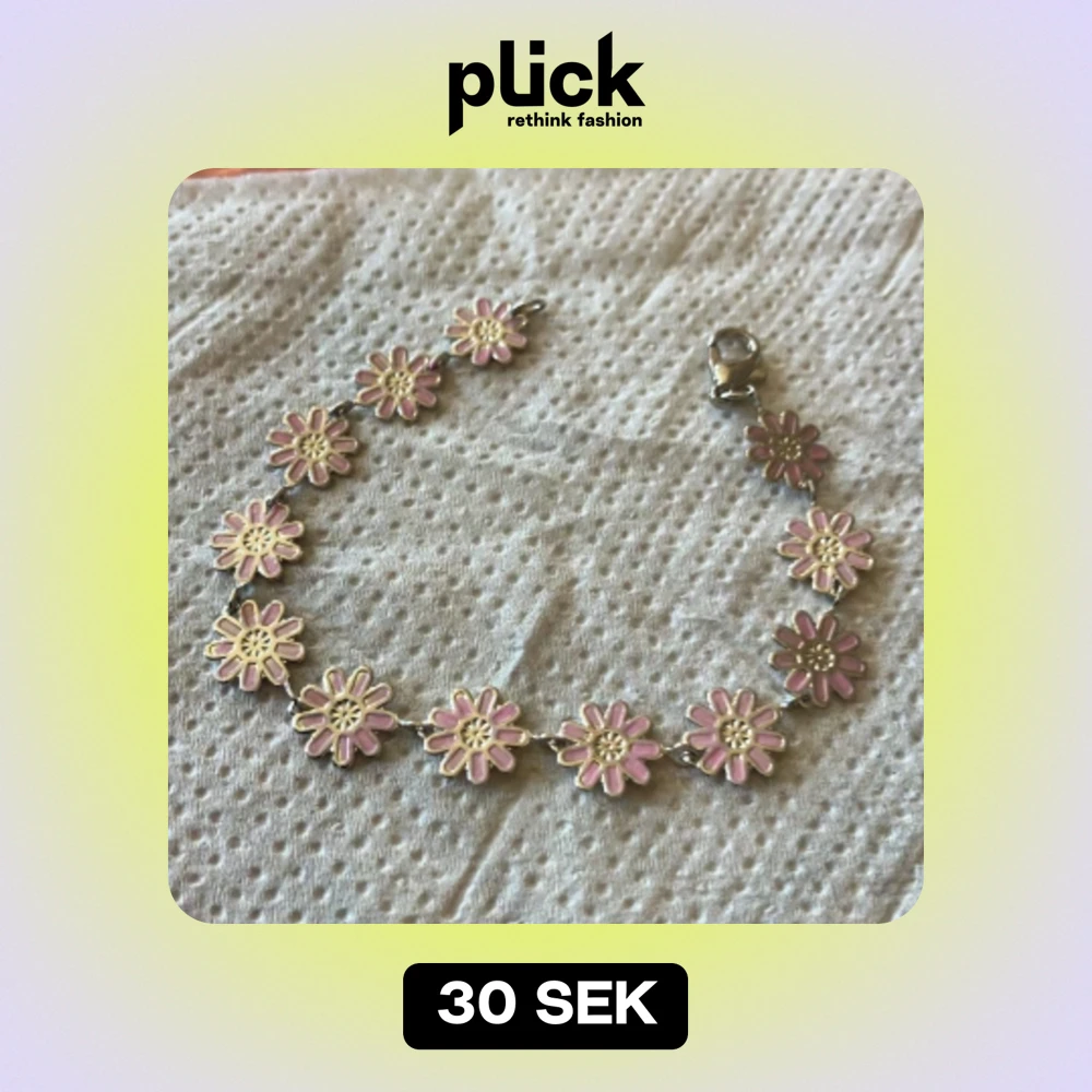 Metall armband blommor ljus rosa strl ca 16 cm smal handled