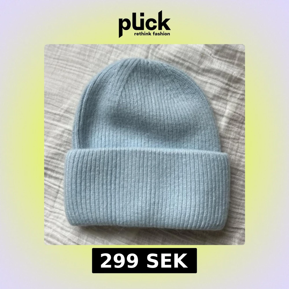 Snygg och enkel ljusblå stickad mössa med ribbad design. Perfekt för kyliga dagar och ger en stilren look. Passar bra till både vardag och utflykter.