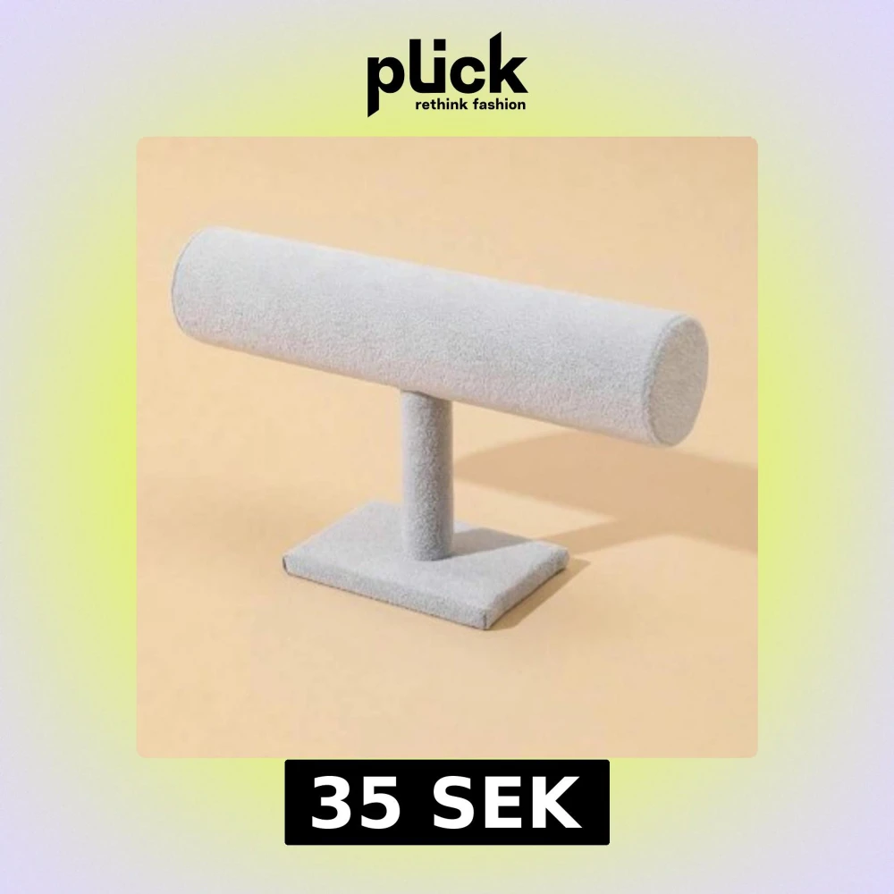 Stilren smyckeshållare i ljusgrå sammet, perfekt för att visa upp armband, klockor eller halsband. Cylindrisk form på en stadig fot, klädd i mjukt material som skyddar dina smycken och ger en lyxig känsla till rummet.
