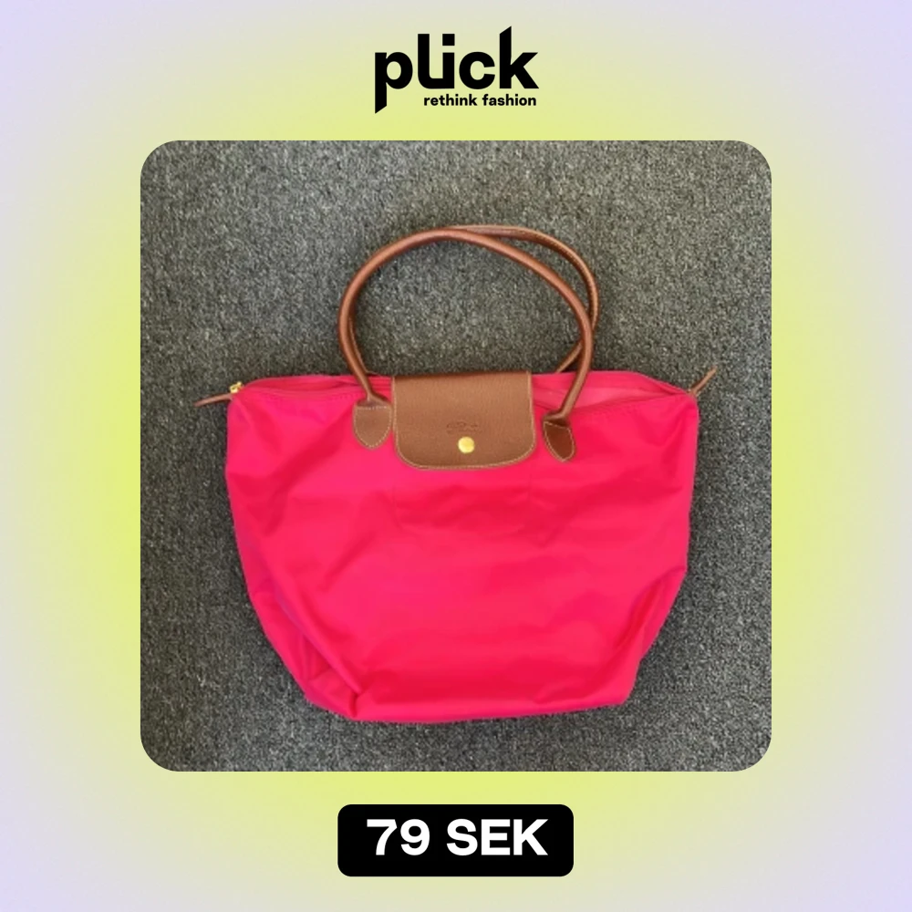 Oäkta longchamp inspirerad väska! Några fläckar på undersidan som säkert går bort i tvätt, annars är väskan i mycket bra skick!