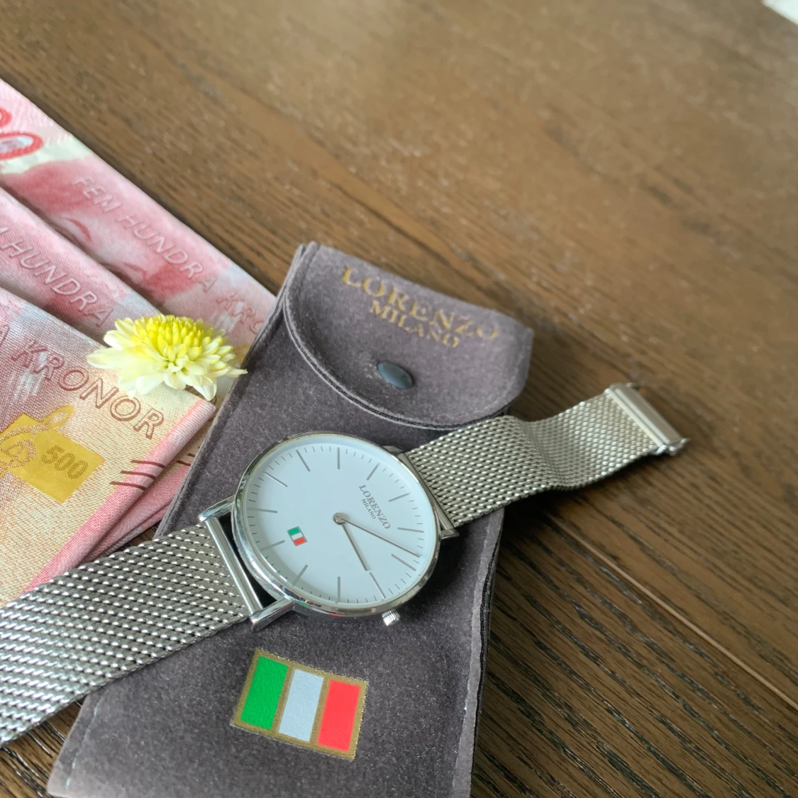 Silvrig Lorenzo Milano Klocka ⎯⎯⎯⎯⎯⎯⎯⎯ 24cm lång ⎯⎯⎯⎯⎯⎯⎯⎯ 9,5/10 i skick ⎯⎯⎯⎯⎯⎯⎯⎯ Stilren ⎯⎯⎯⎯⎯⎯⎯⎯ Water Resistant ⎯⎯⎯⎯⎯⎯⎯⎯