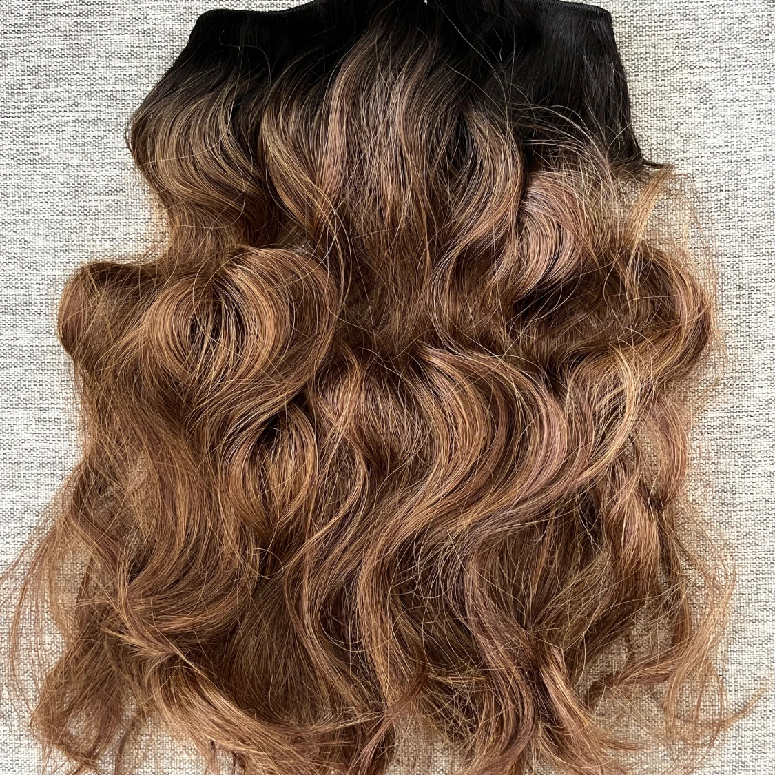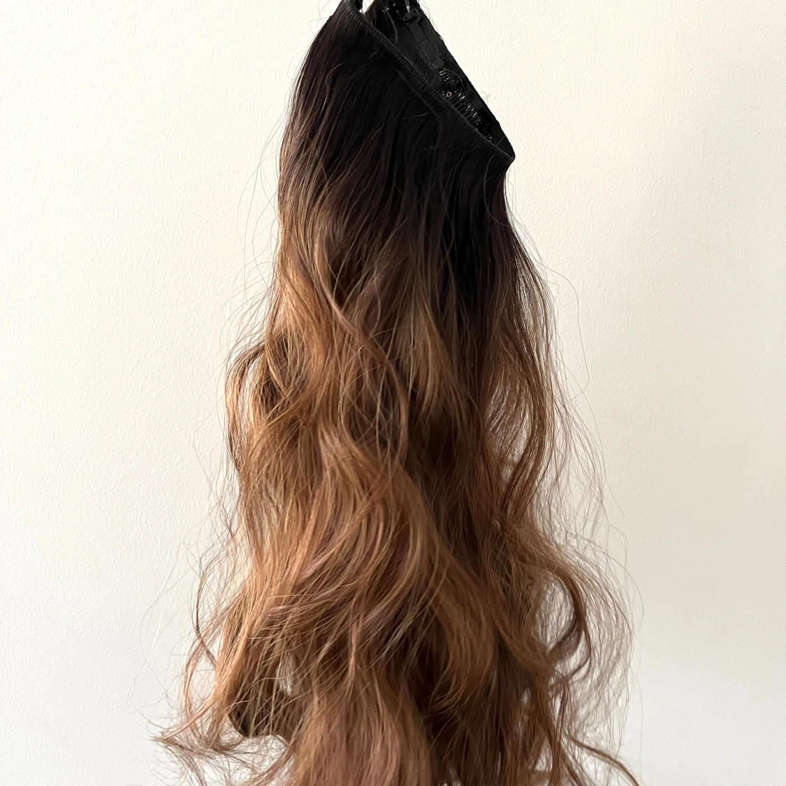 Löshår i bra kvalite, känns som naturlig hår, har både klämmor och snöre.