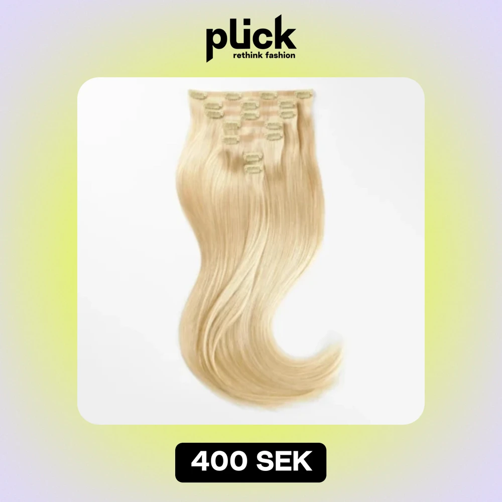 Clip-on set Original 7 pieces, #60 Light Blond 40 cm från Rapunzel of Sweden. Använd en gång till studenten.