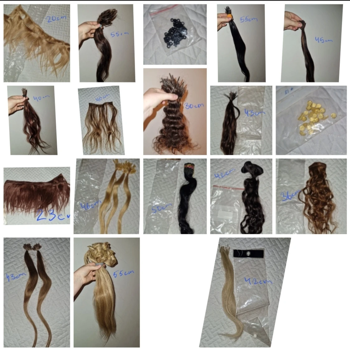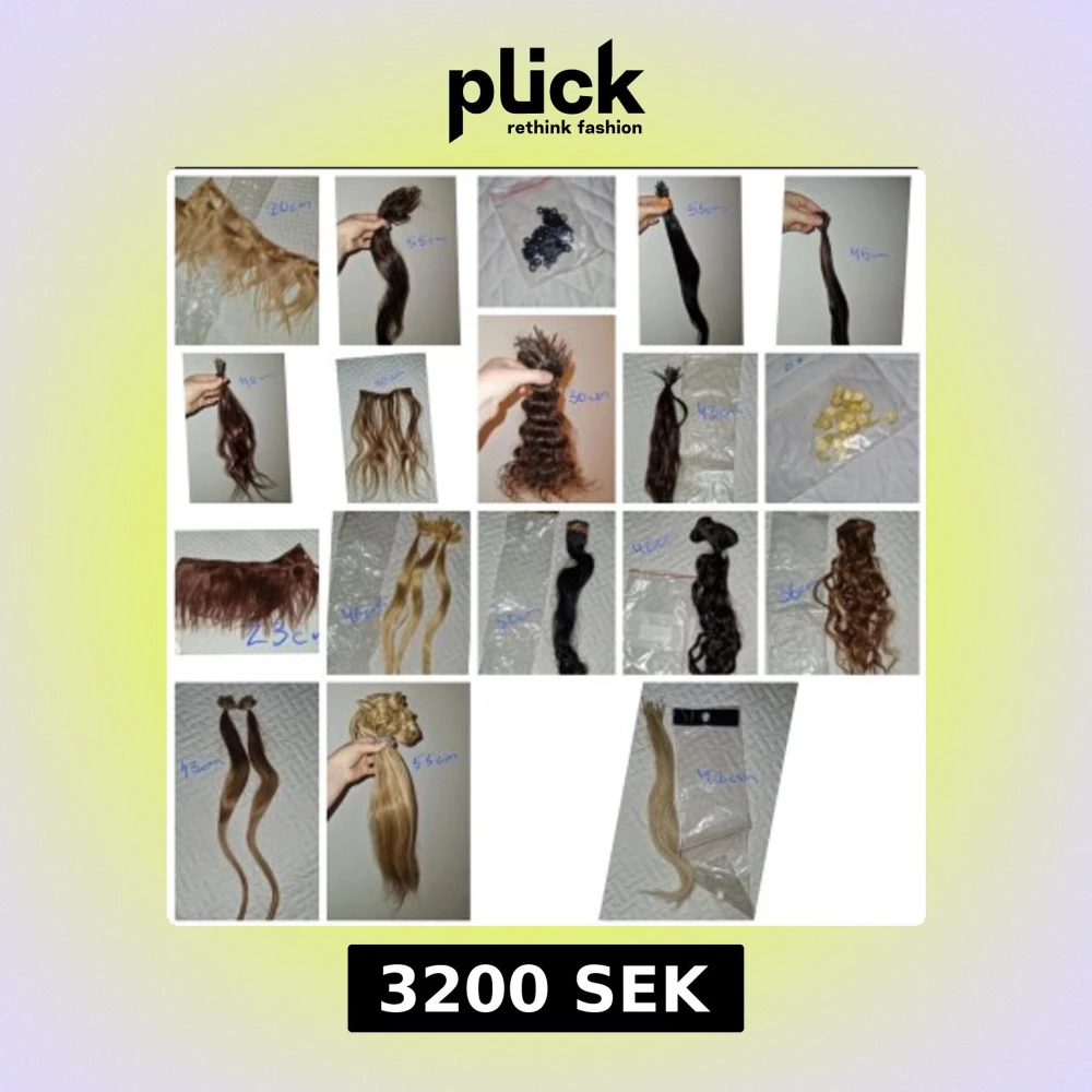 100% äkta hår (human hair) från Taj Mahal i Stockholm. Inget hår är färgat eller kemiskt behandlat – allt i fint skick och förvarat torrt och rent. Det är en blandning av: -Keratinvax-slingor (färdiga för isättning) -Weft / sy-in-hår 📏 Längder: Olika, 20–55 cm 🎨 Färger: Naturliga färger-inga kemiska behandlingar. 💎 Skick: Vissa helt nya, andra endast testade/använda kort stund. Även lite vax och mikroringar ingår. Bilder och info fås vid intresse! Priset är för allt men kan köpas som delar!