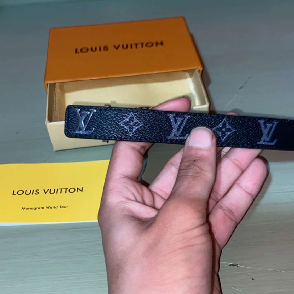 Säljer ett svart armband från Louis Vuitton med klassiskt LV-monogram i silver och grått. Bältet är gjort i skinn och har en stilren design. Perfekt accessoar för att lyfta din outfit. Pris kan diskuteras!!