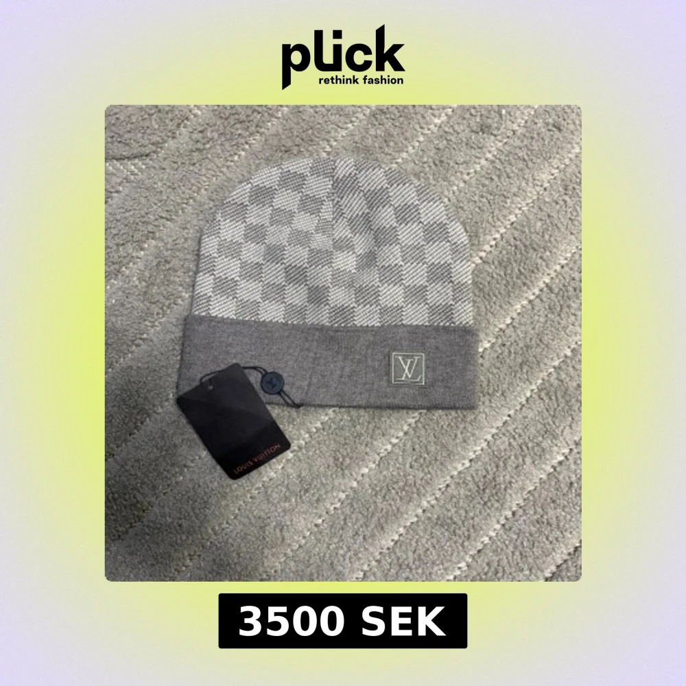 Snygg grå mössa från Louis Vuitton med klassiskt rutigt mönster och vikt kant. LV-logga framtill i broderad patch. Mjuk och skön stickad kvalitet, perfekt för kyliga dagar. En stilren accessoar som lyfter din look.
