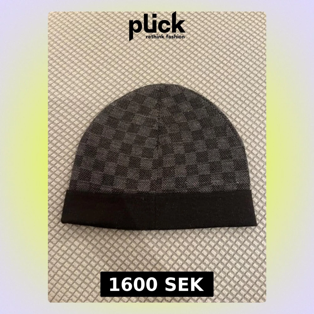Svart mössa med klassiskt rutigt mönster och flera färgglada LV-patchar framtill. Mössan har uppvikt kant och är tillverkad i ett mjukt material som passar perfekt för kyliga dagar. Snygg accessoar med exklusiv känsla och streetstyle-vibe.