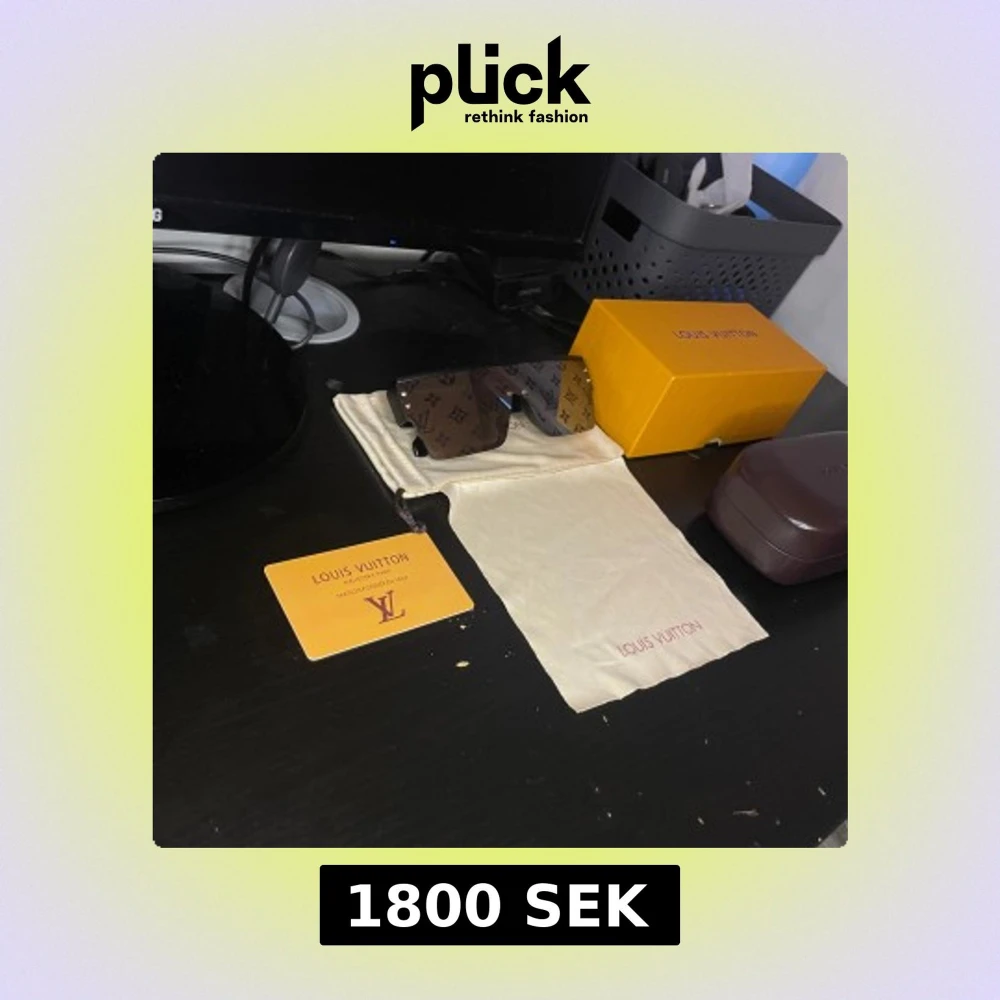 Snygga solglasögon från Louis Vuitton med rektangulära, stora svarta bågar och bruna linser med LV-monogram över hela glaset. Glasögonen har en exklusiv vibe och levereras med originalfodral, box och certifikat. Perfekt accessoar för dig som vill sticka ut.