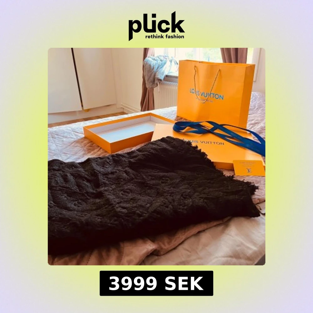 Exklusiv svart halsduk från Louis Vuitton med ikoniskt LV-mönster i tyget och fransade kanter. Halsduken är mjuk och lyxig, perfekt för att lyfta vilken outfit som helst. Kommer med originalbox, påse och certifikat.