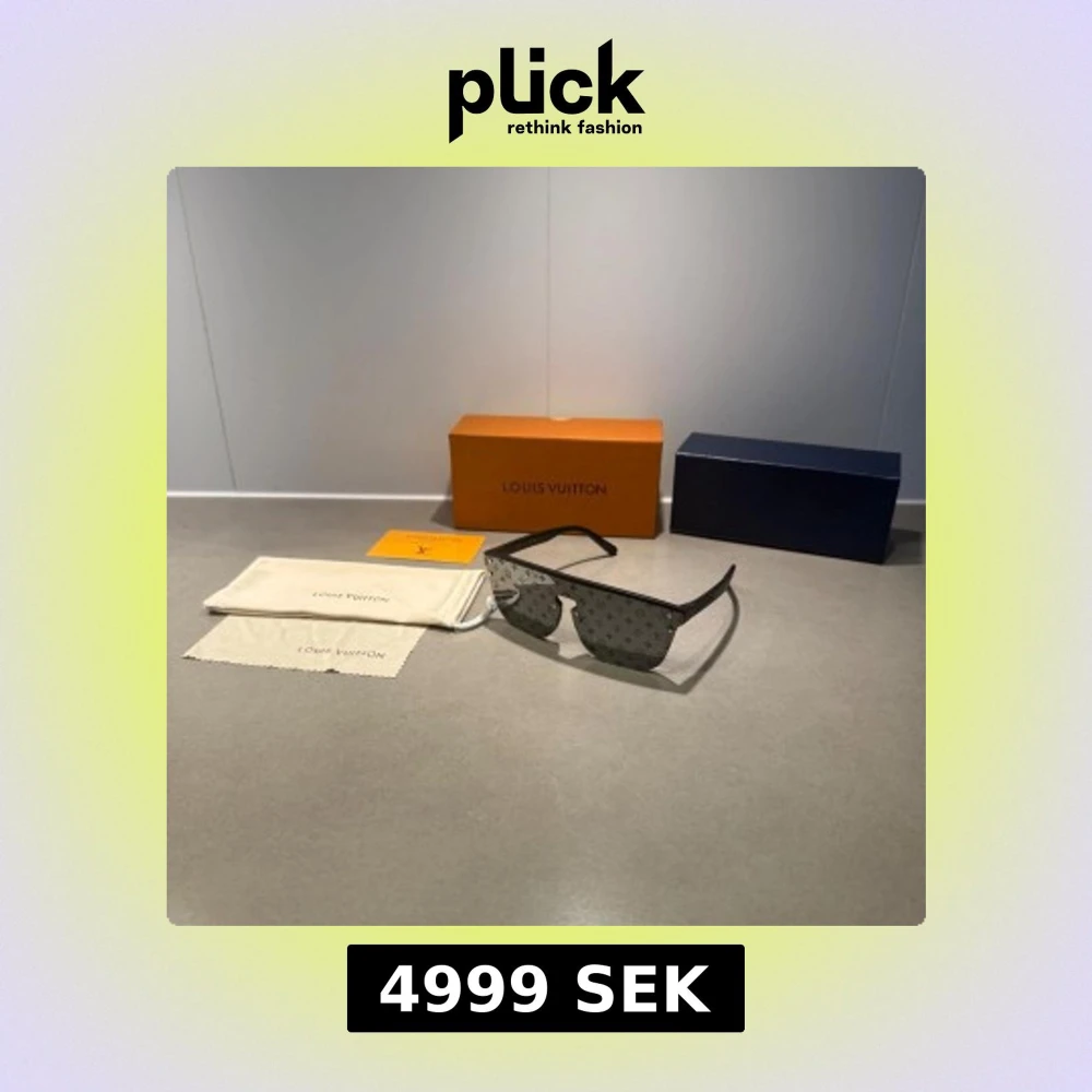 Stilrena svarta solglasögon från Louis Vuitton med LV-monogram på glasen. Raka, mattsvarta bågar i plast och mörka linser. Kommer med originalfodral, putsduk och ask. Perfekt accessoar för dig som vill sticka ut.