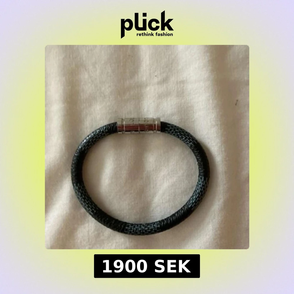 Elegant svart armband från Louis Vuitton med en stilren design. Armbandet har en metallisk låsning i silverfärg och kommer i originalförpackning med en snygg orange låda och en tygpåse. Pris går o diskutera