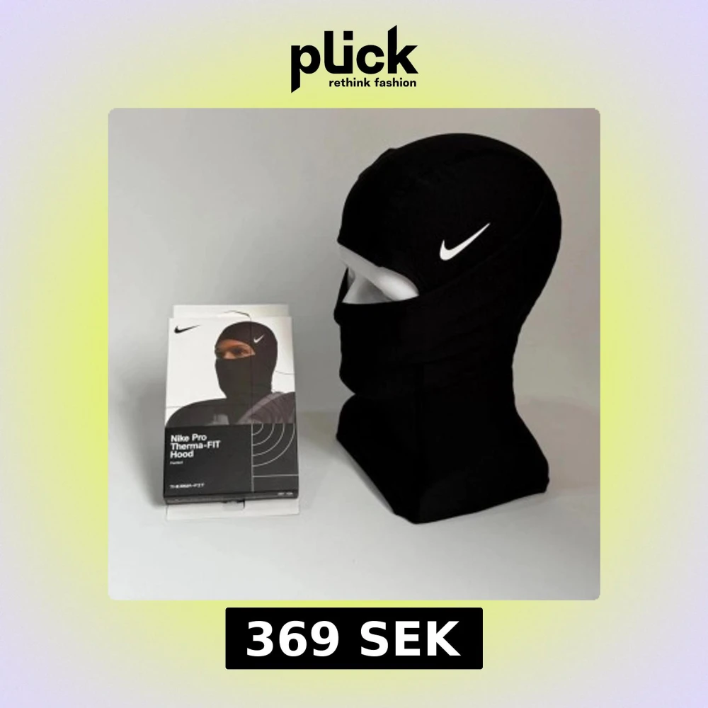 Nike Pro Therma-FIT balaclava i svart med vit Nike-logga på sidan. Tight passform som täcker hela huvudet och halsen, perfekt för kalla dagar. Tillverkad i mjukt och värmande syntetmaterial som andas. Snygg och sportig look för dig som gillar att sticka ut.