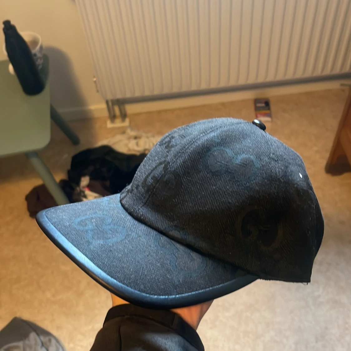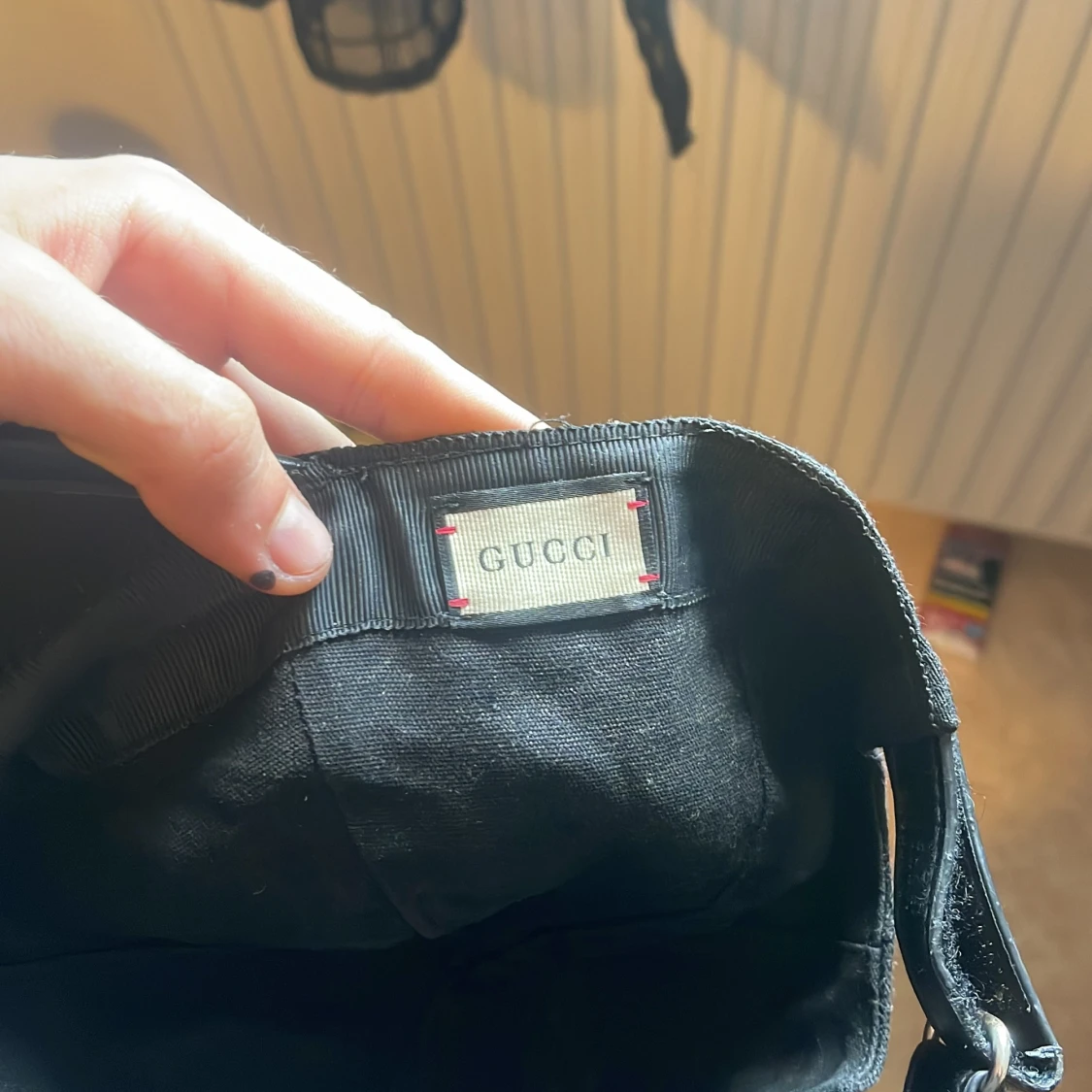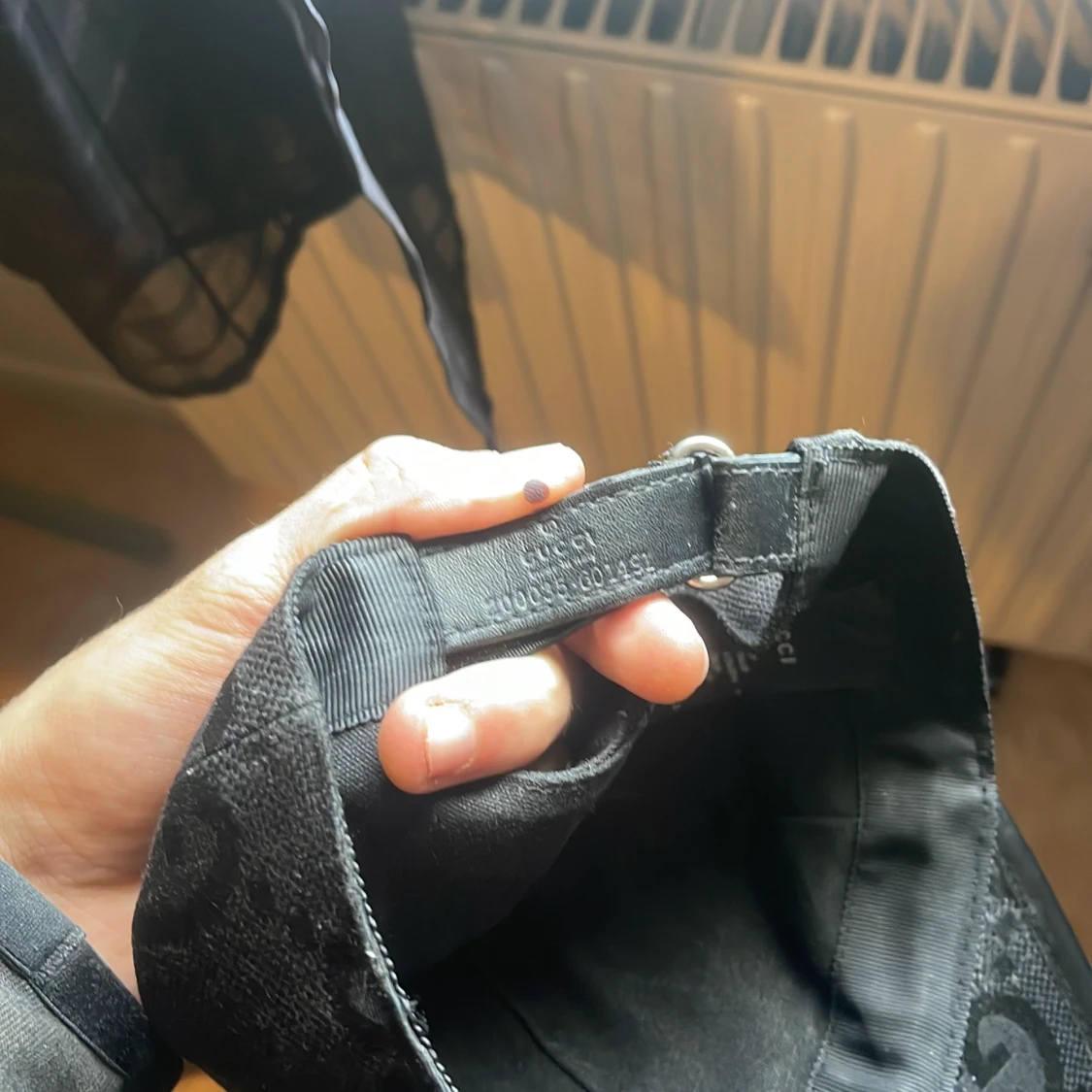 Snygg svart keps från Gucci med diskret GG-mönster över hela kepsen. Kepsen har böjd skärm med svart kant och justerbart spänne bak. Tillverkad i ett slitstarkt tyg som känns lyxigt och passar perfekt till streetwear eller en clean look.