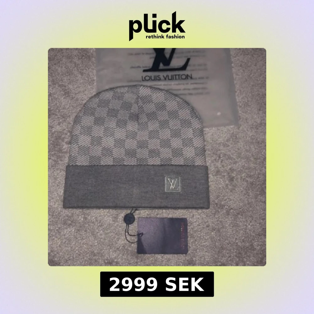 Snygg grå mössa från Louis Vuitton med ett klassiskt rutigt mönster. Helt ny