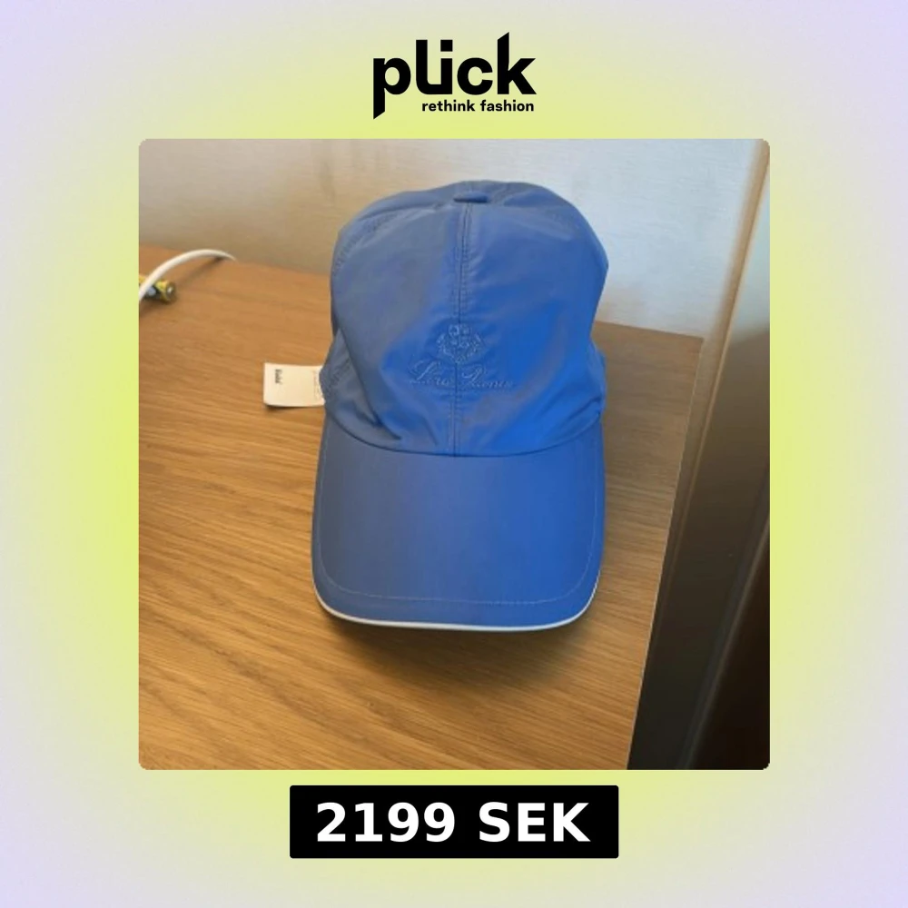 Snygg blå keps från Loro Piana Storm System med broderad logga framtill. Kepsen har en böjd skärm med vit kant och insidan är fodrad med rutigt tyg i beige, grönt och rött. Perfekt för dig som vill ha en exklusiv och stilren look. De står inte storlek S på lappen men den passar storlek S.