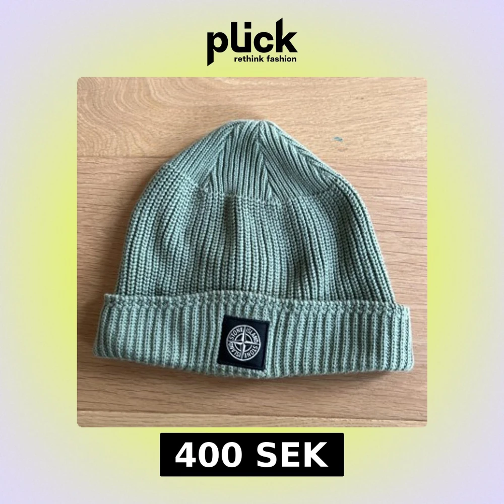 Snygg grön ribbstickad mössa från Stone Island med klassisk svart logotyp framtill. Perfekt accessoar för kyligare dagar och enkel att matcha med olika outfits. Mössan är ganska tunn men snygg för en lyxig look