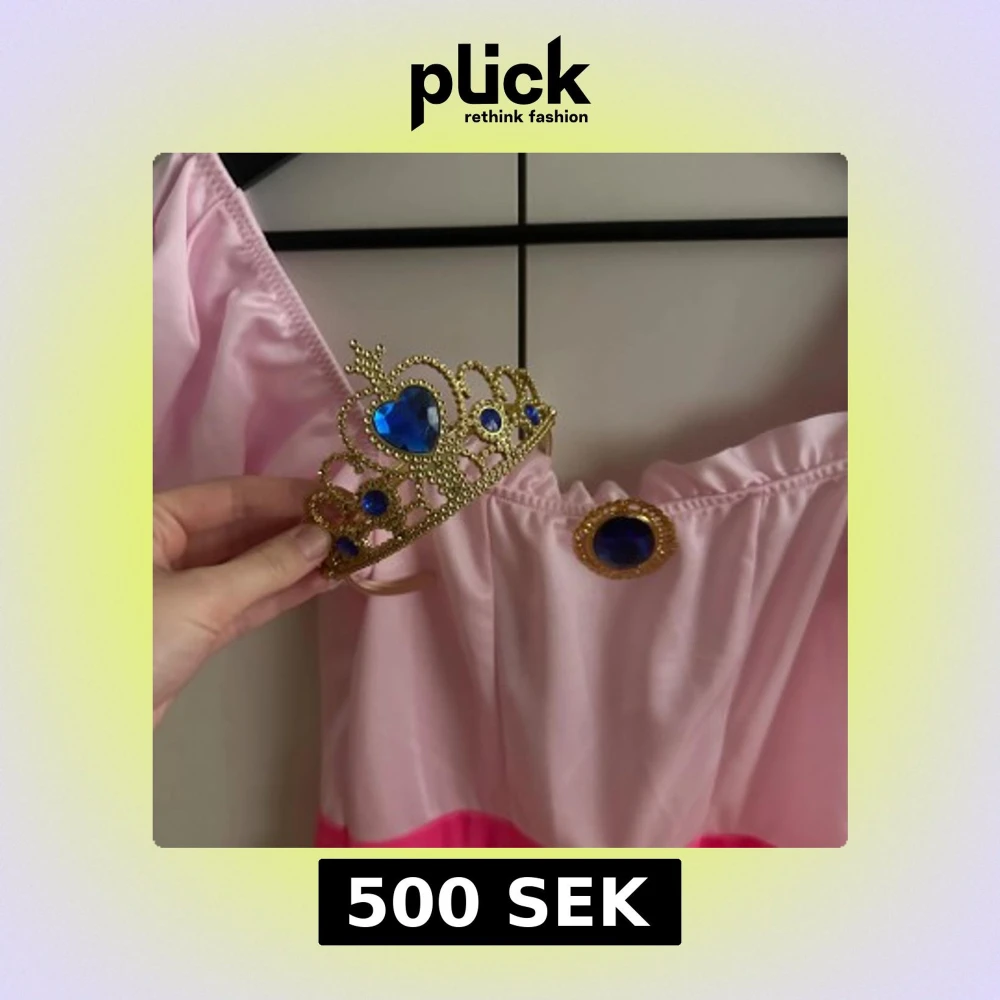 Komplett princess peach kostym med rosa klänning, krona, knähöga strumpor med rosetter samt långa satin handskar!