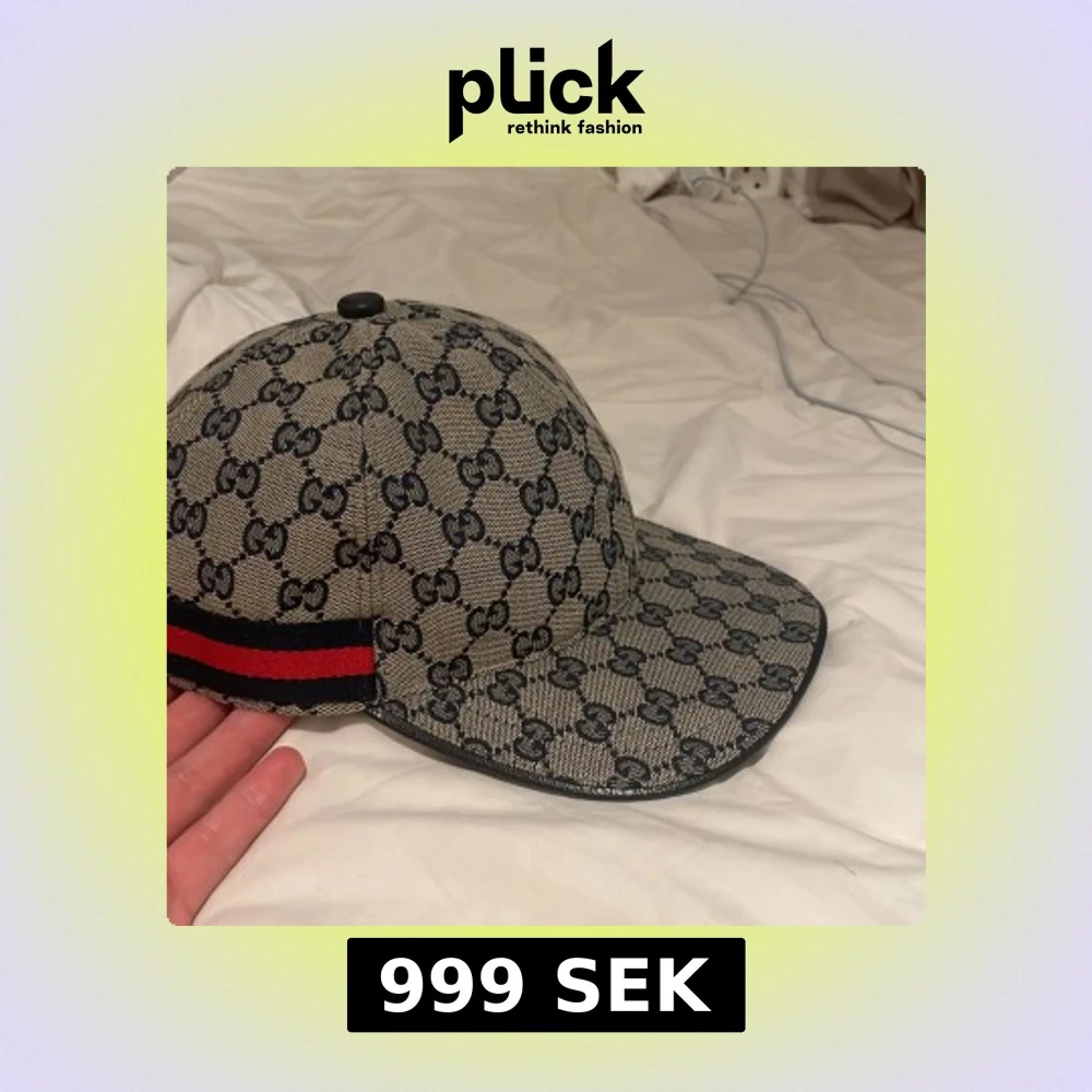 Snygg keps med ett klassiskt mönster och logotyp. Den har en justerbar rem baktill och en randig detalj i rött och blått på sidan. Perfekt för att ge din outfit en stilfull touch.