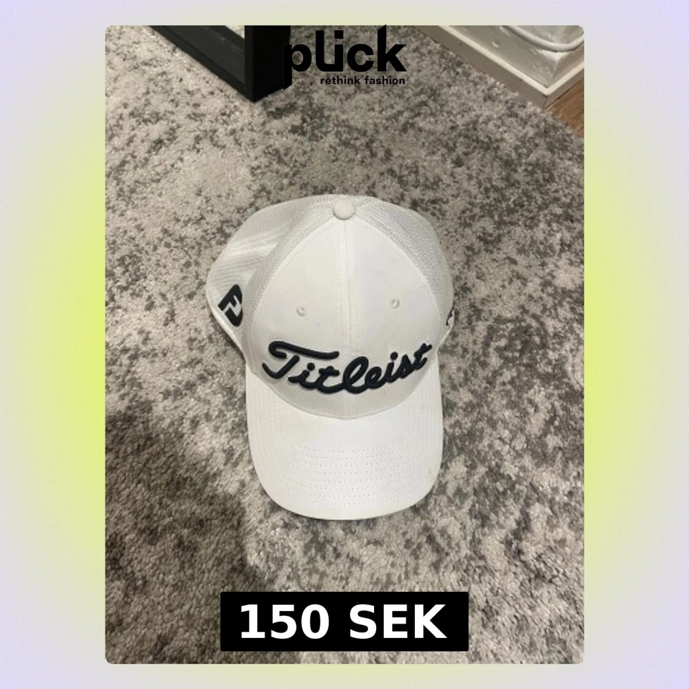 Snygg vit keps från Titleist med svart broderad logga framtill. Klassisk böjd skärm och mesh på sidorna för extra ventilation. Perfekt för golfbanan eller som stilren accessoar. Justerbar passform och sportig look.