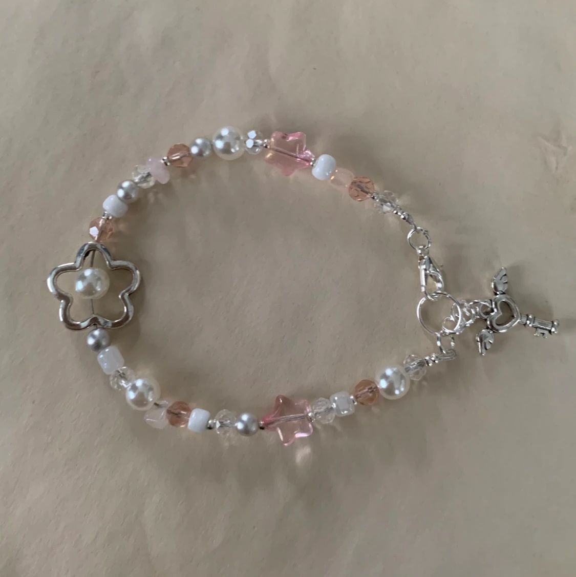 Egengjort <3 16-17cm. Pris kan diskuteras tillsammans men det blir runt 50-60kr + 13kr frakt đĂlskar blom-pĂ€rlorna i armbandet!! Vill du ha en gullig satin pĂ„se blir det typ 4kr extra. Du kan se pĂ„sen pĂ„ första kollektion inlĂ€gget đ