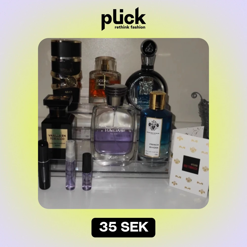 Säljer samples i storlekar 3ml/5ml Rasasi Hawas🍋🧼30kr/45kr Mancera French Riviera🧂🫧🍋66kr/110kr Lattafa Asad 🍂☕🌶️25kr/40kr Lattafa Fakhar🍋🫧30kr/45kr Cocktail intense 🍦🪵 30kr/45kr Påfyllnings Travel Sample 5ml/25kr Mancera Red tobacco intense 1.8ml 60kr